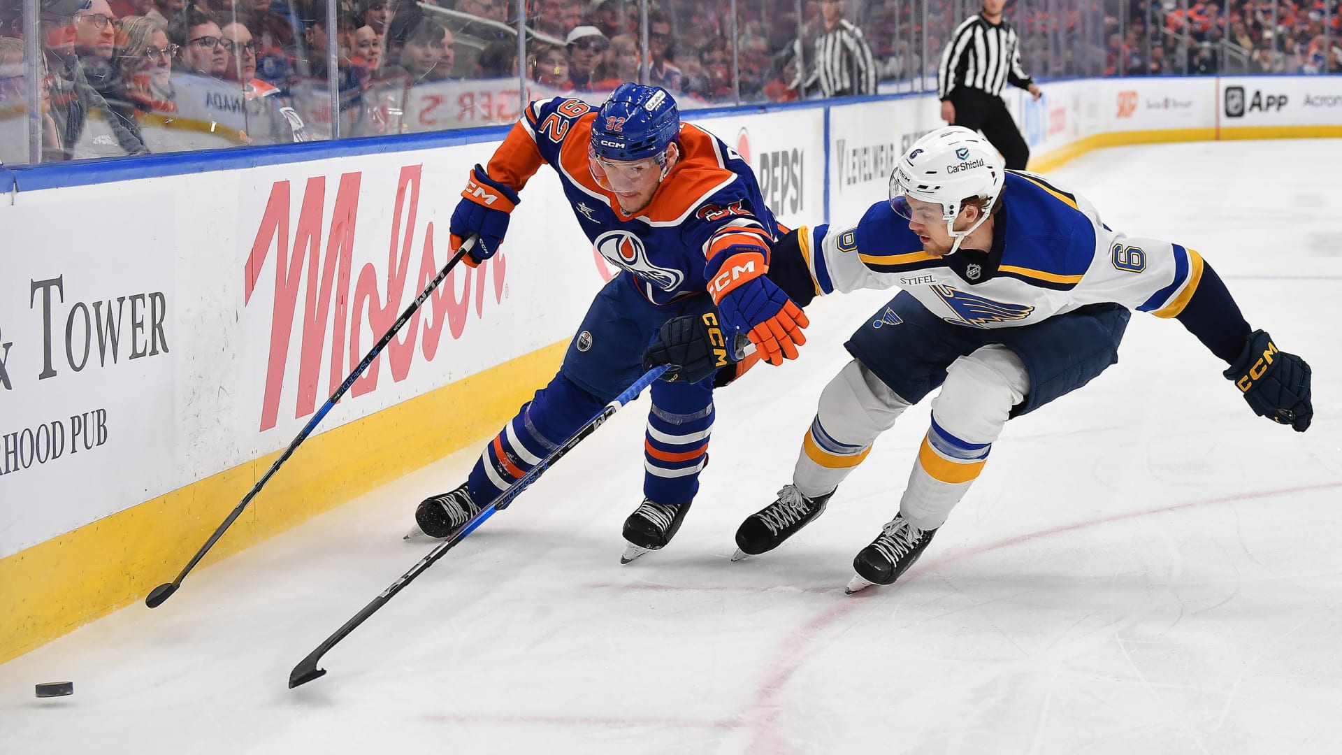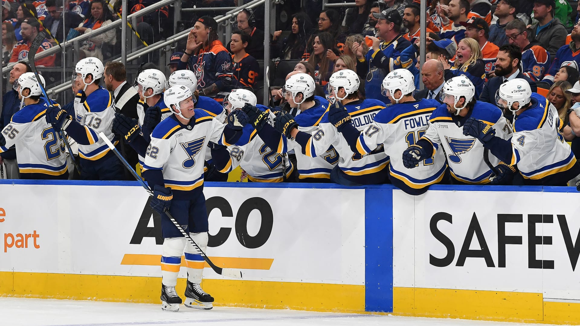 The St. Louis Blues fell to the Edmonton Oilers 4-3 at Rogers Place on April 9, 2025. (Photos: Getty Images)