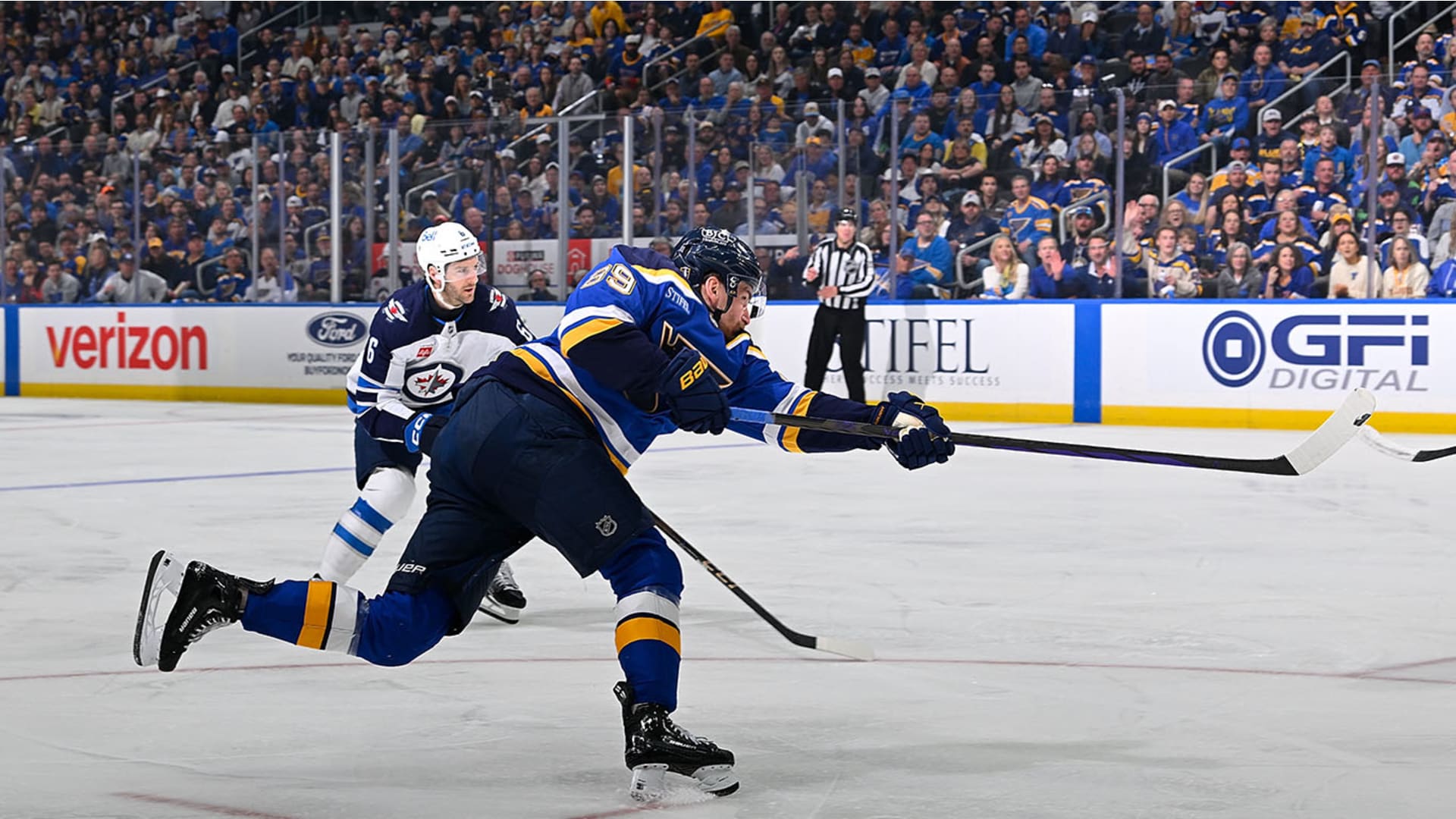 The St. Louis Blues defeated the Winnipeg Jets 7-2 in Game 3 of the first round of the Stanley Cup Playoffs at Enterprise Center on April 24, 2025. (Photos: Scott Rovak, Joe Puetz, and Lexie Knight)