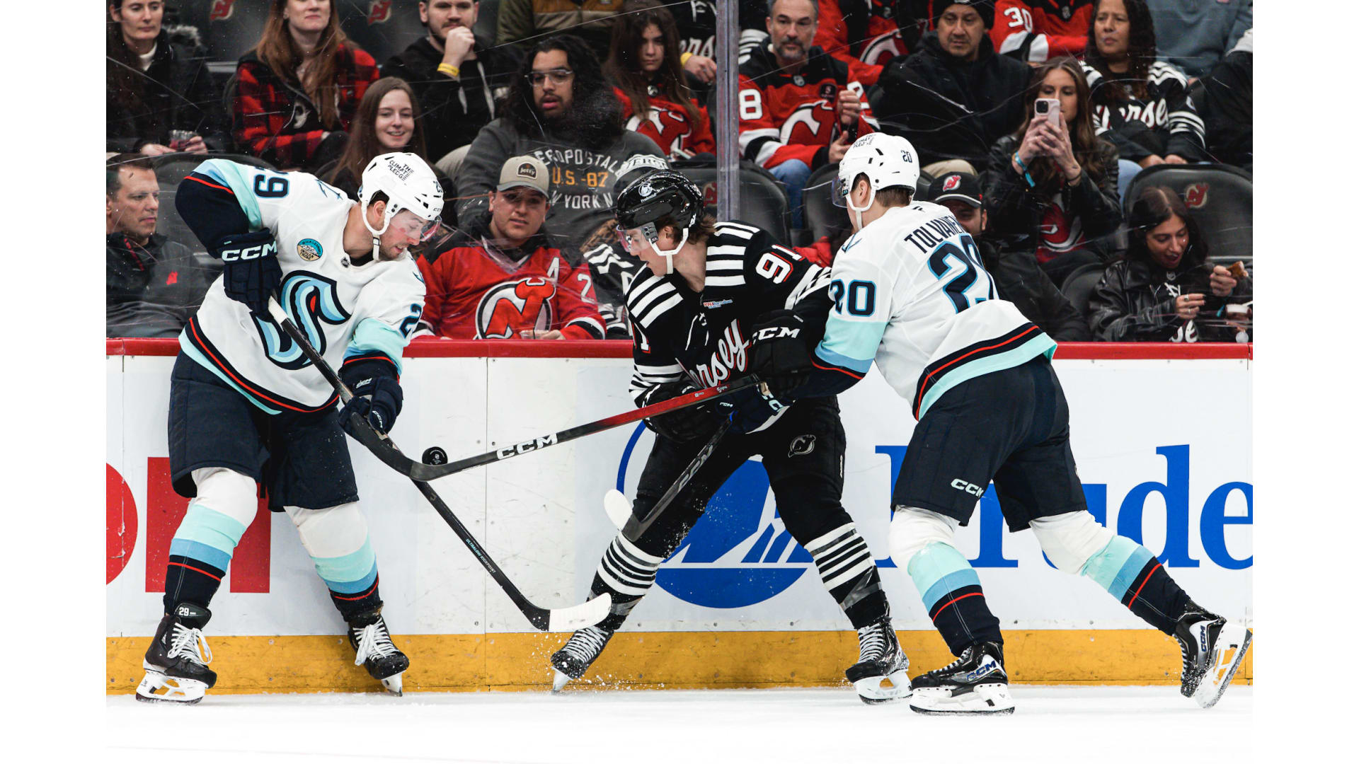 Photos from the game between the Devils and Seattle Kraken. Photos by Andrew Maclean, Tom Horak and Getty Images.