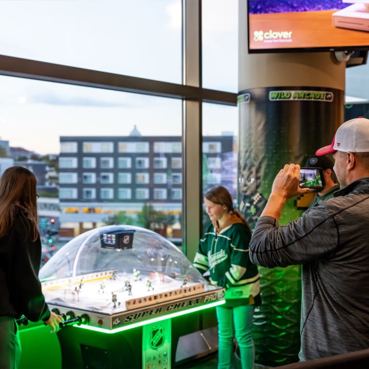 The Wild Arcade is a free, interactive experience for fans of all ages. Located on the concourse near Section 215, fans may participate in a game of bubble hockey, enjoy a quick game of NHL 26 on the PS5, or test their stick-handling skills on the SuperDeker. Face painting will be available on select weekend dates. (PLEASE NOTE: There is a cash charge for face painting.) The Wild Arcade is open each game from the time doors open (75 minutes prior to puck drop) through the end of the second intermission.