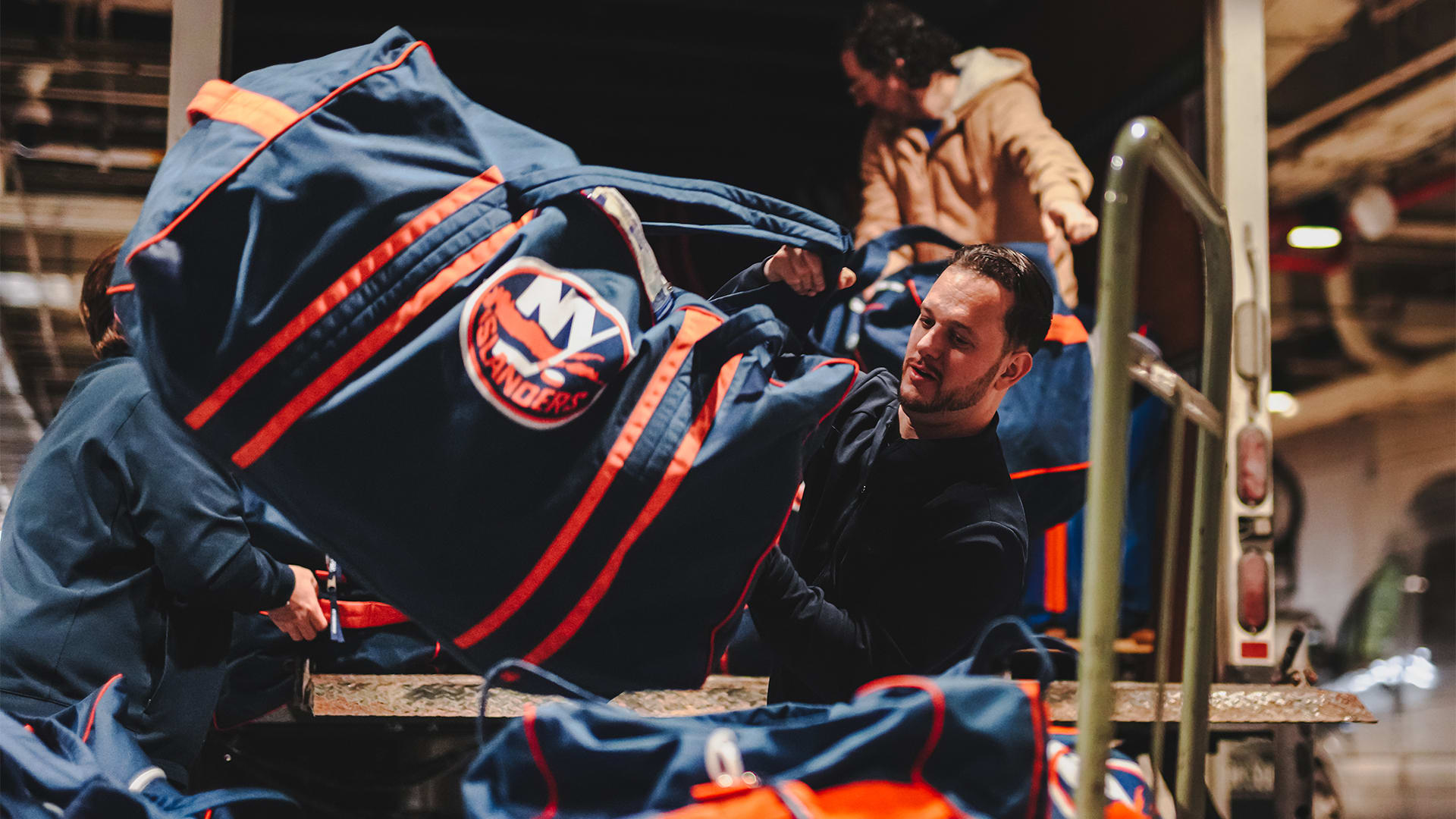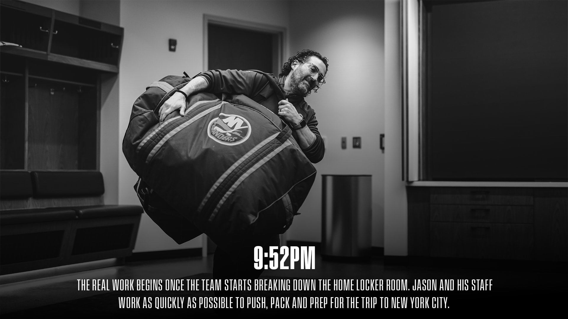 On Jan. 28, 2026 the Islanders photo team followed Head Equipment Manager Jason Berger and assistants Chris Murphy, Jason McGrath and Brandon Jackala to get a behind-the-scenes look at the work involved in a back-to-back set against the New York Rangers. Photos by Dennis DaSilva