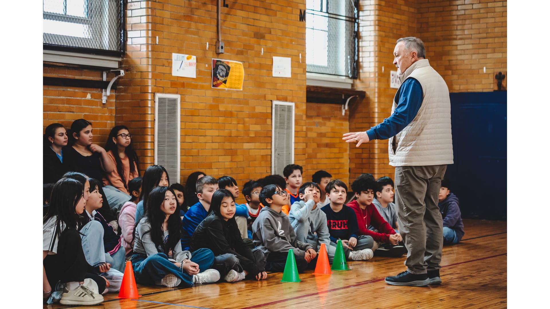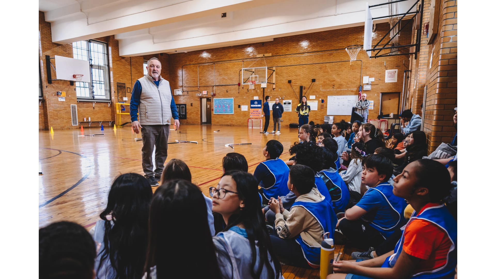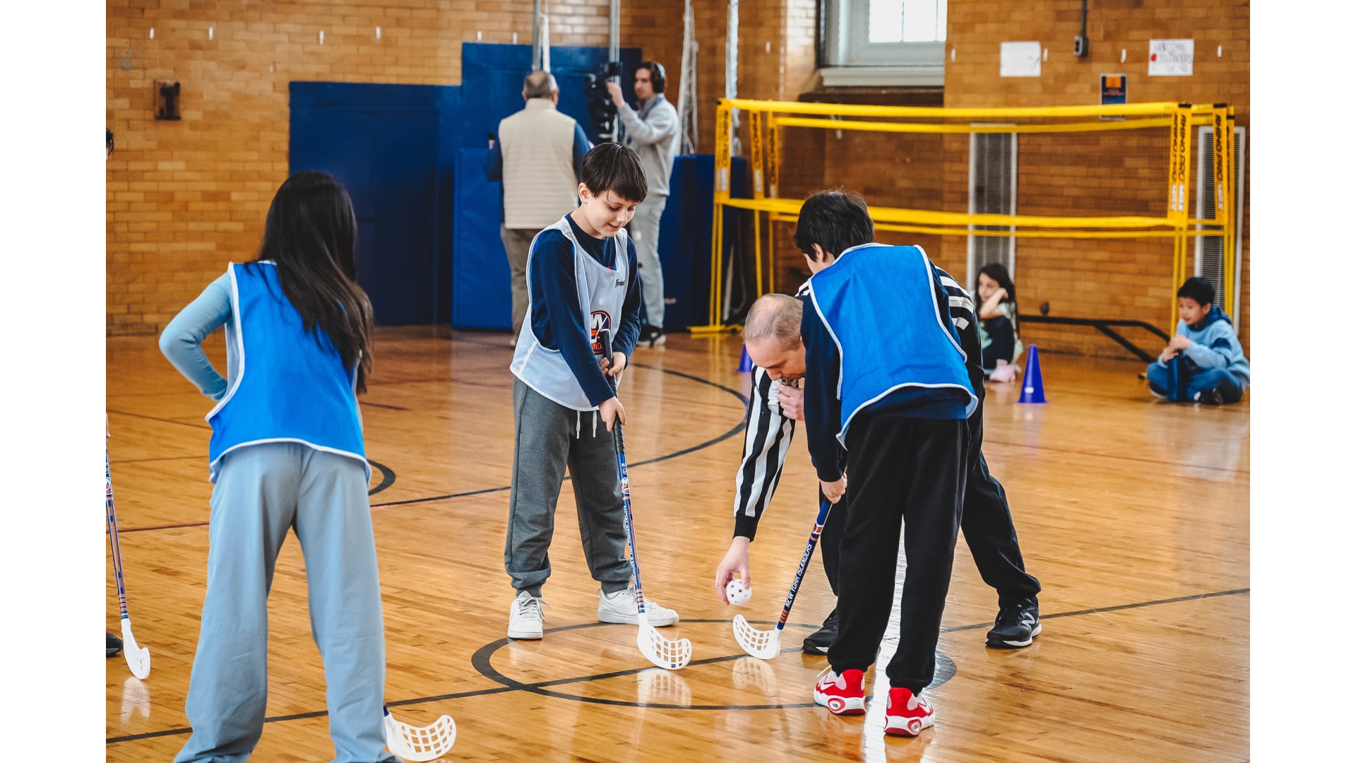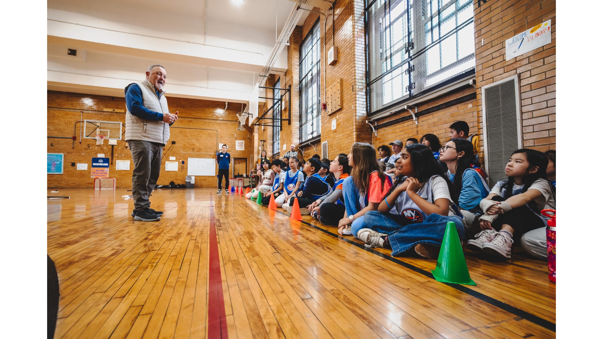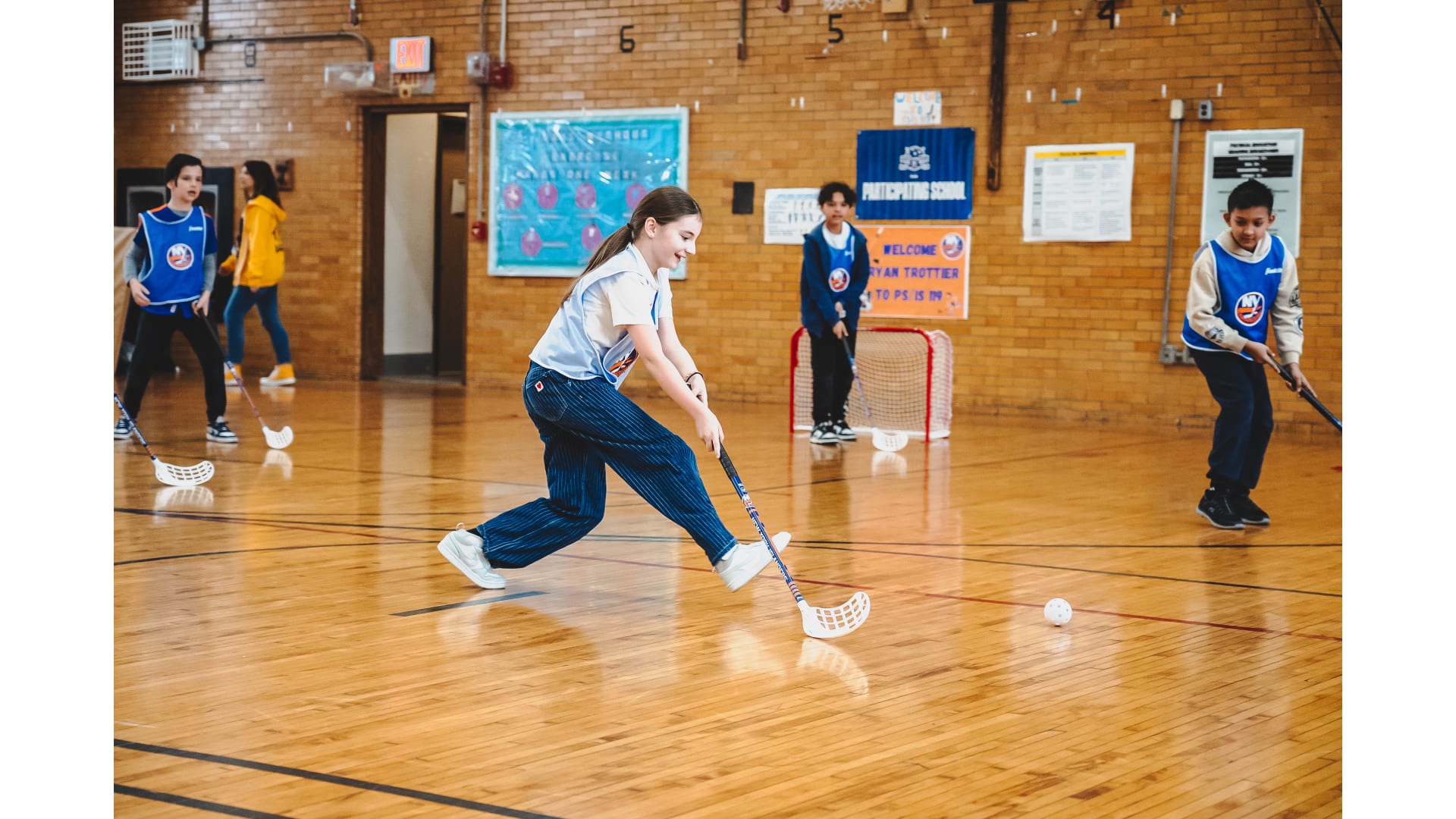 Islanders legend Bryan Trottier stopped by P.S./I.S. 119 Queens for a Floorball session. Photos by Sam Johnston/New York Islanders