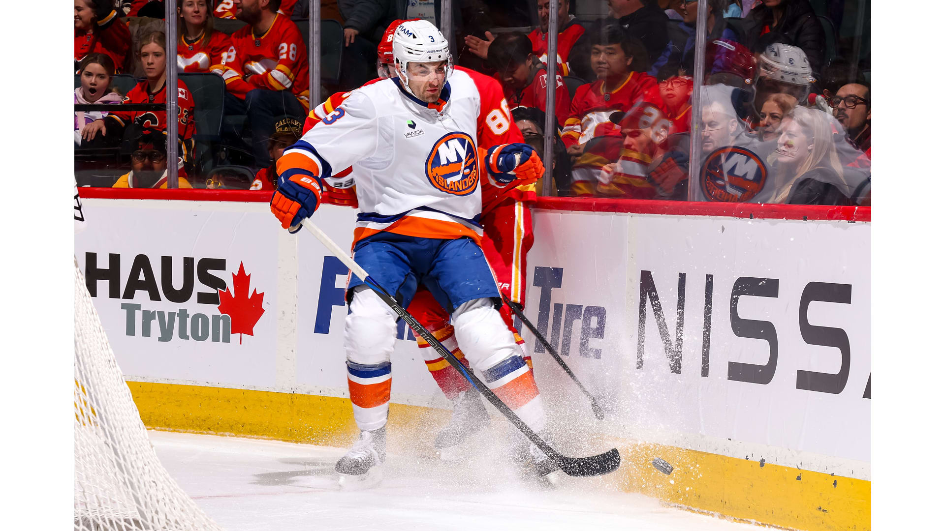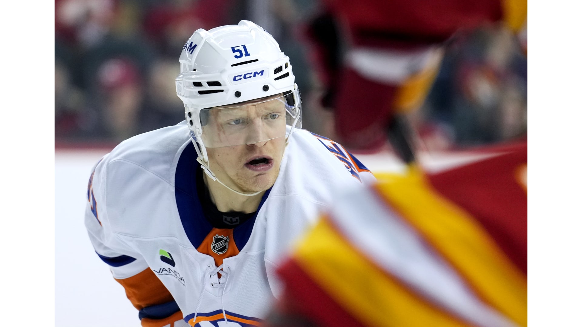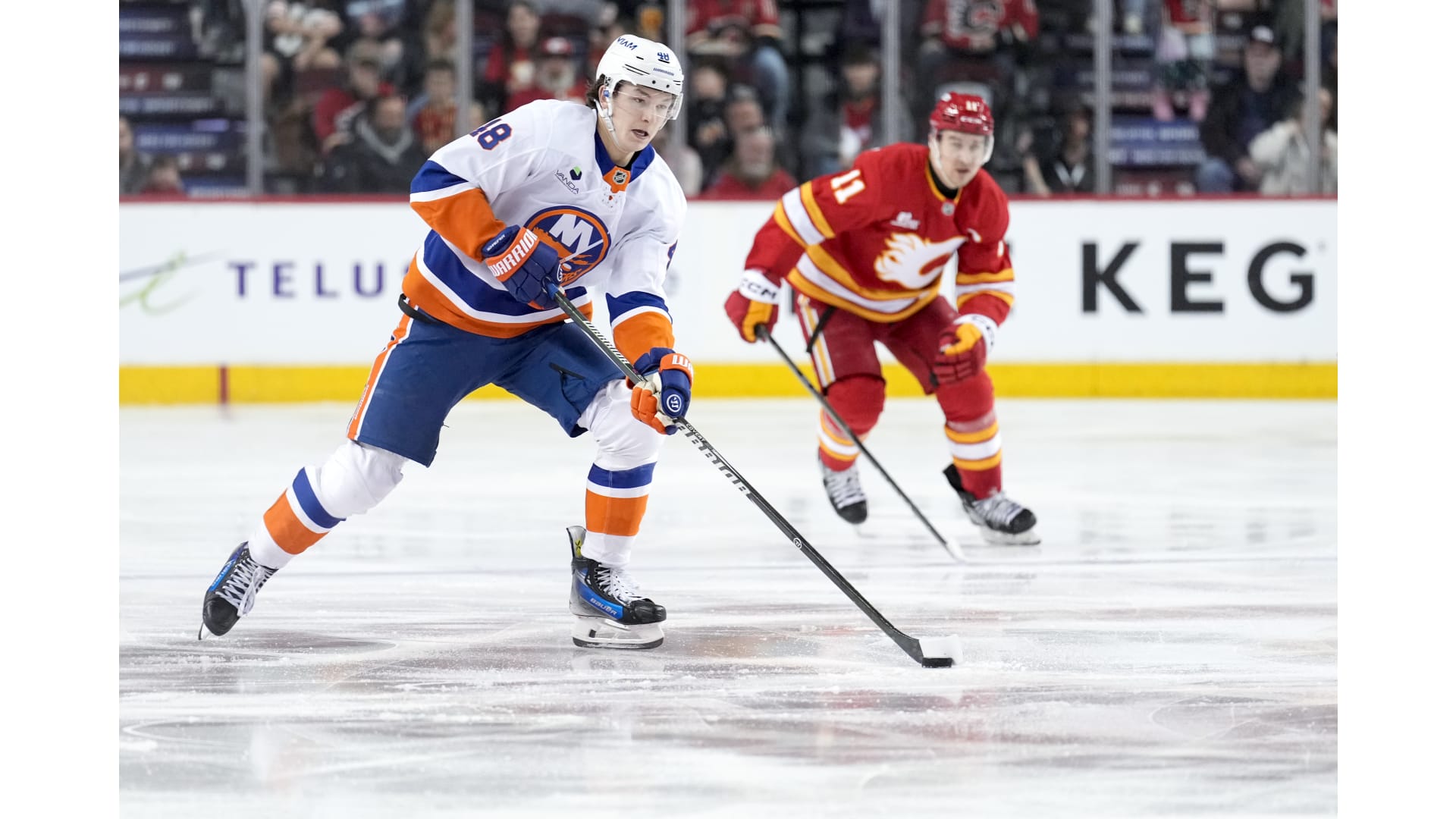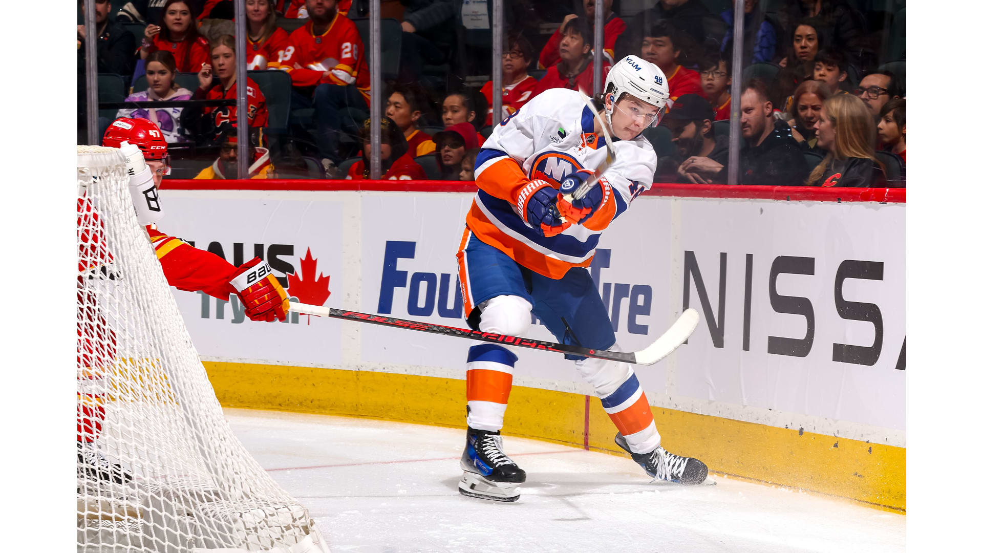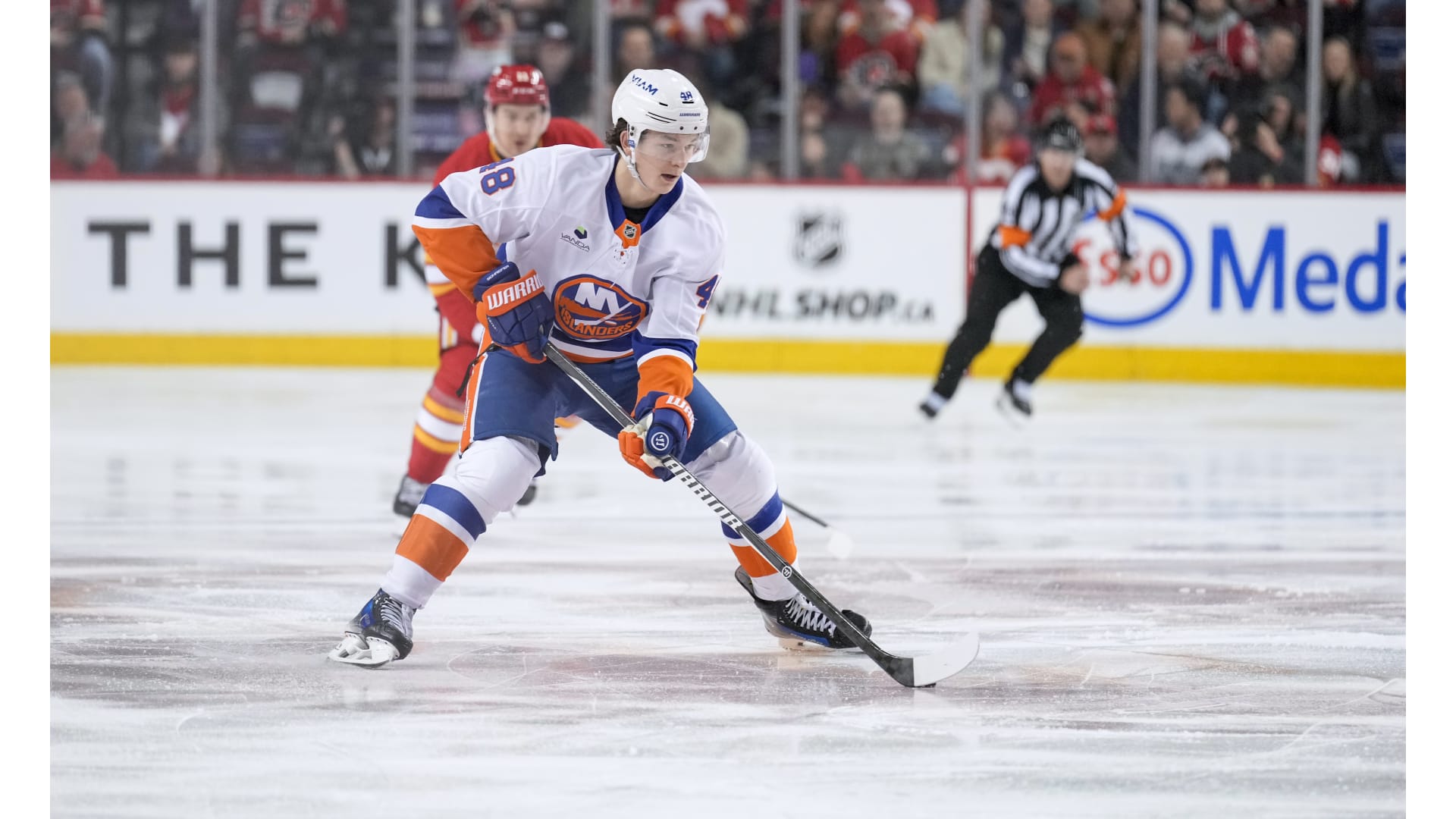 JG Pageau scored for the Islanders, but only after the Flames established a 4-0 lead. Yegor Sharangovich, Adam Klapka, Justin Kirkland and Yan Kuznetsov scored for the Flames. Anders Lee rounded out the scoring with his 300th career goal.