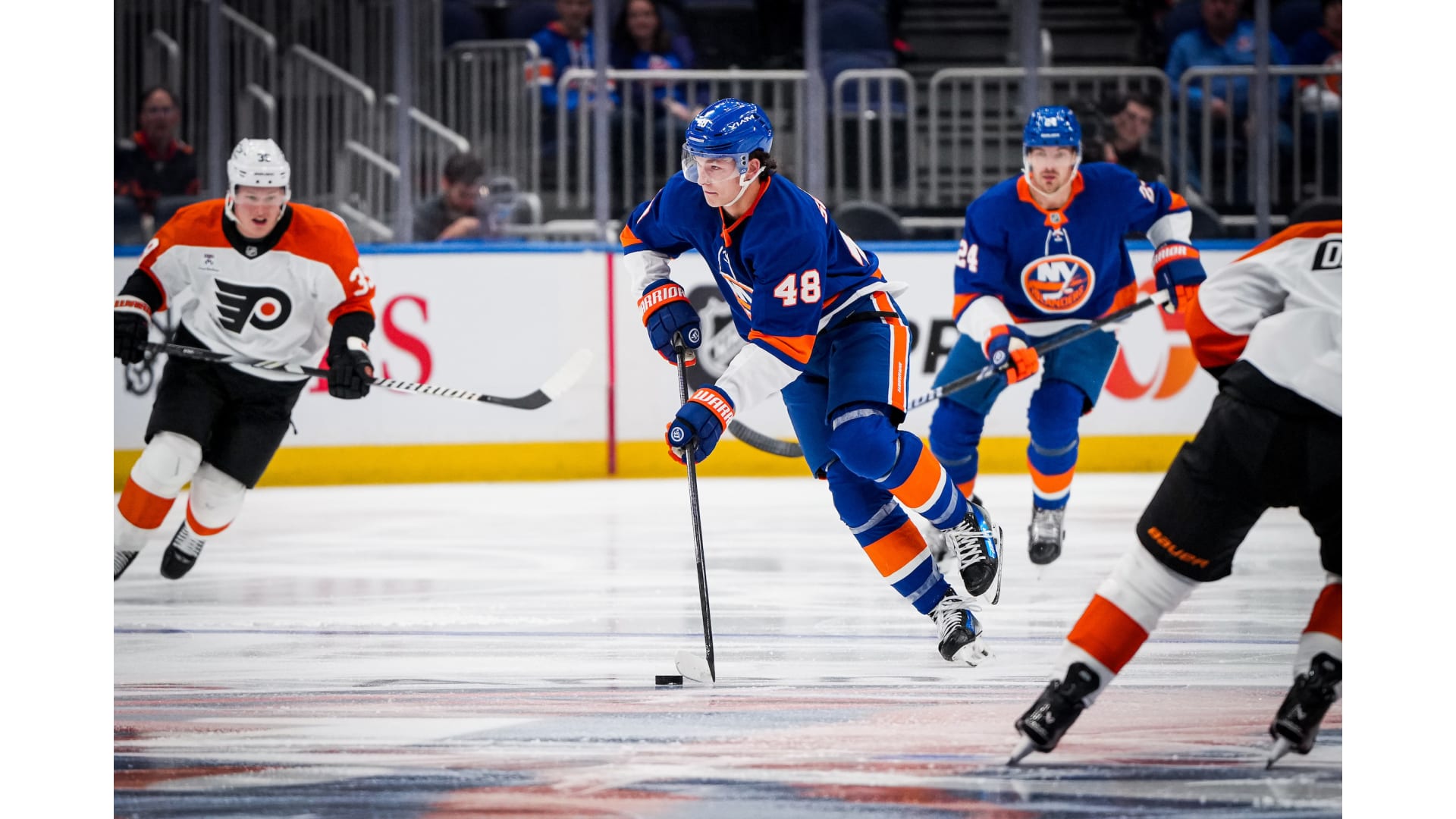 Kyle Palmieri and Marshall Warren scored for the Isles, while Rodrigo Abols and Matvei Michkov scored for Philadelphia in regulation. Emil Andrae got the edge for Philly in the 11th round of the shootout with the game-deciding goal.