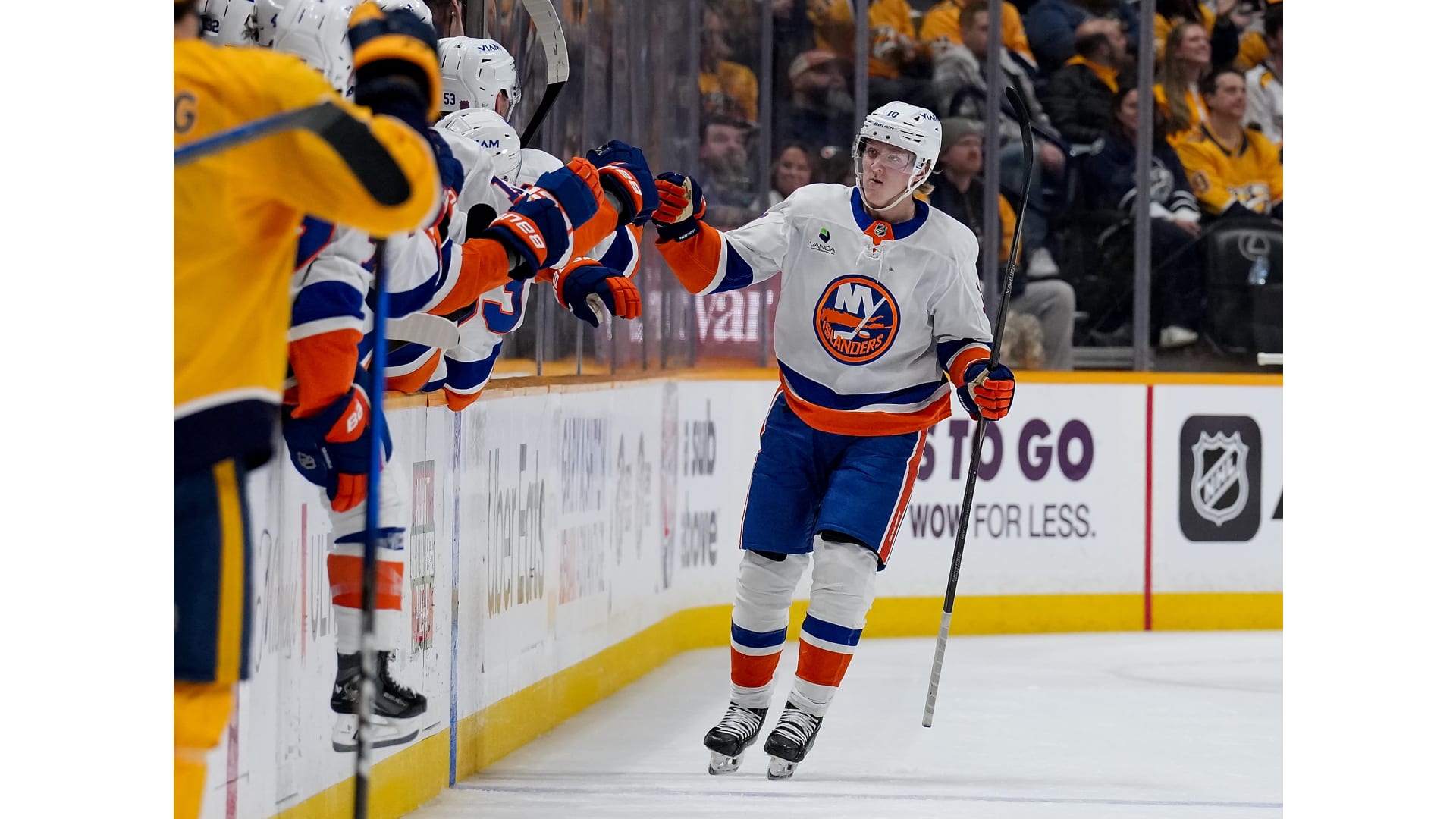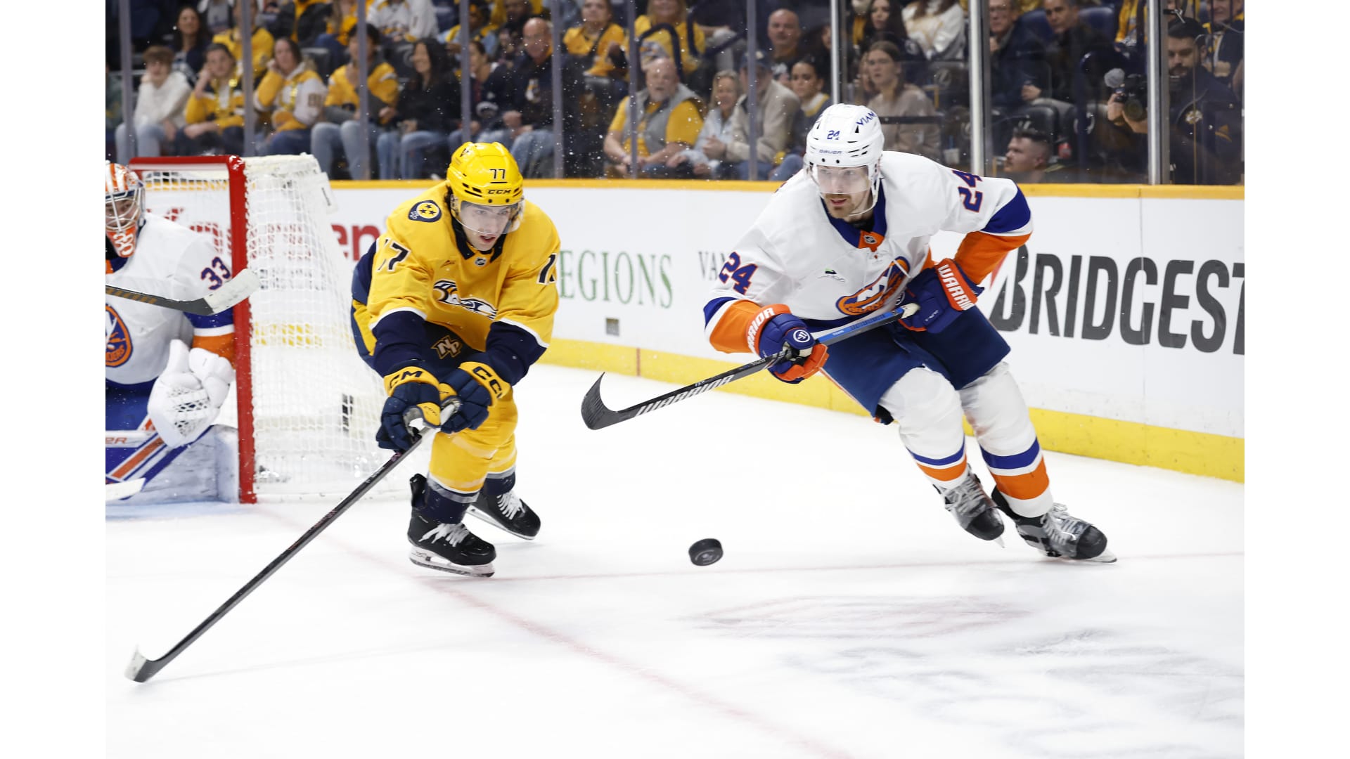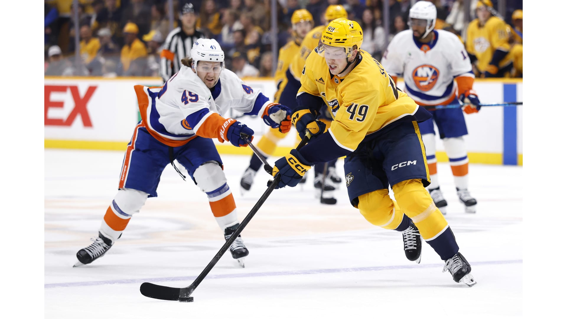 Simon Holmstrom opened the scoring for the Islanders, while Ryan O’Reilly scored a shorthanded goal to tie it and Filip Forsberg netted the lone goal in the shootout to win it.