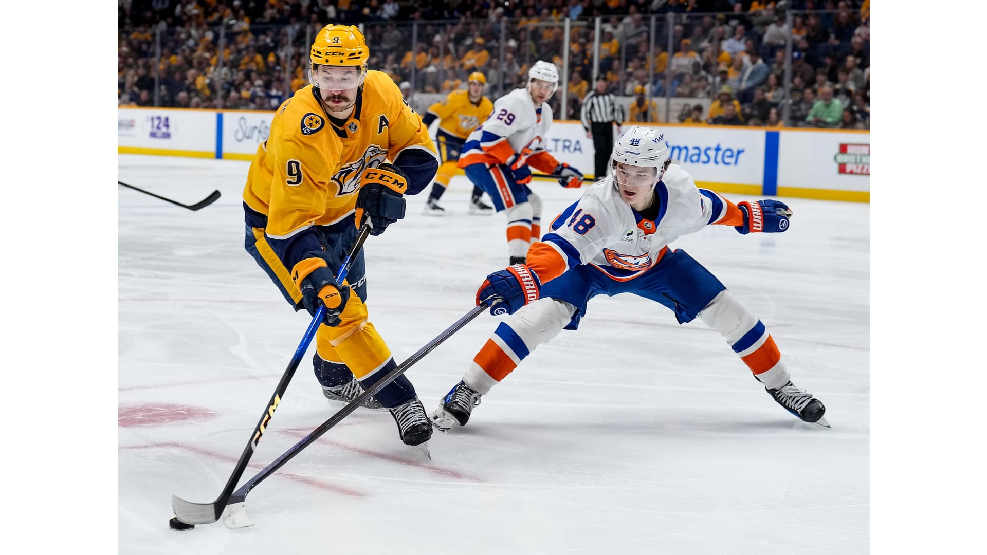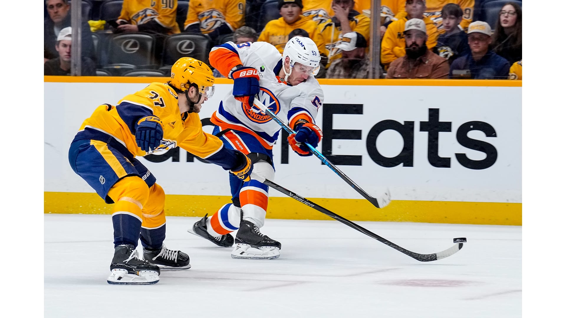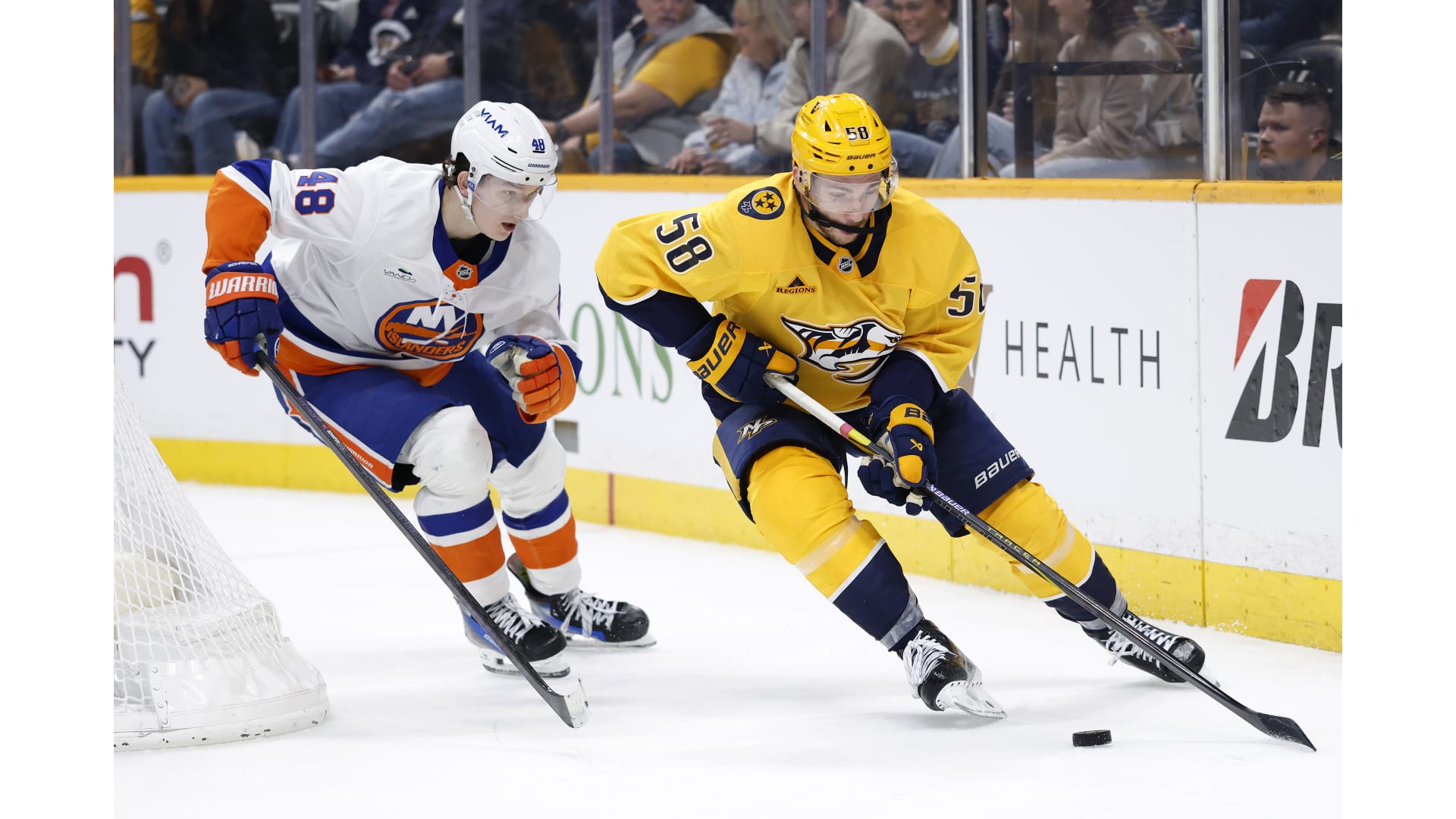 Simon Holmstrom opened the scoring for the Islanders, while Ryan O’Reilly scored a shorthanded goal to tie it and Filip Forsberg netted the lone goal in the shootout to win it.
