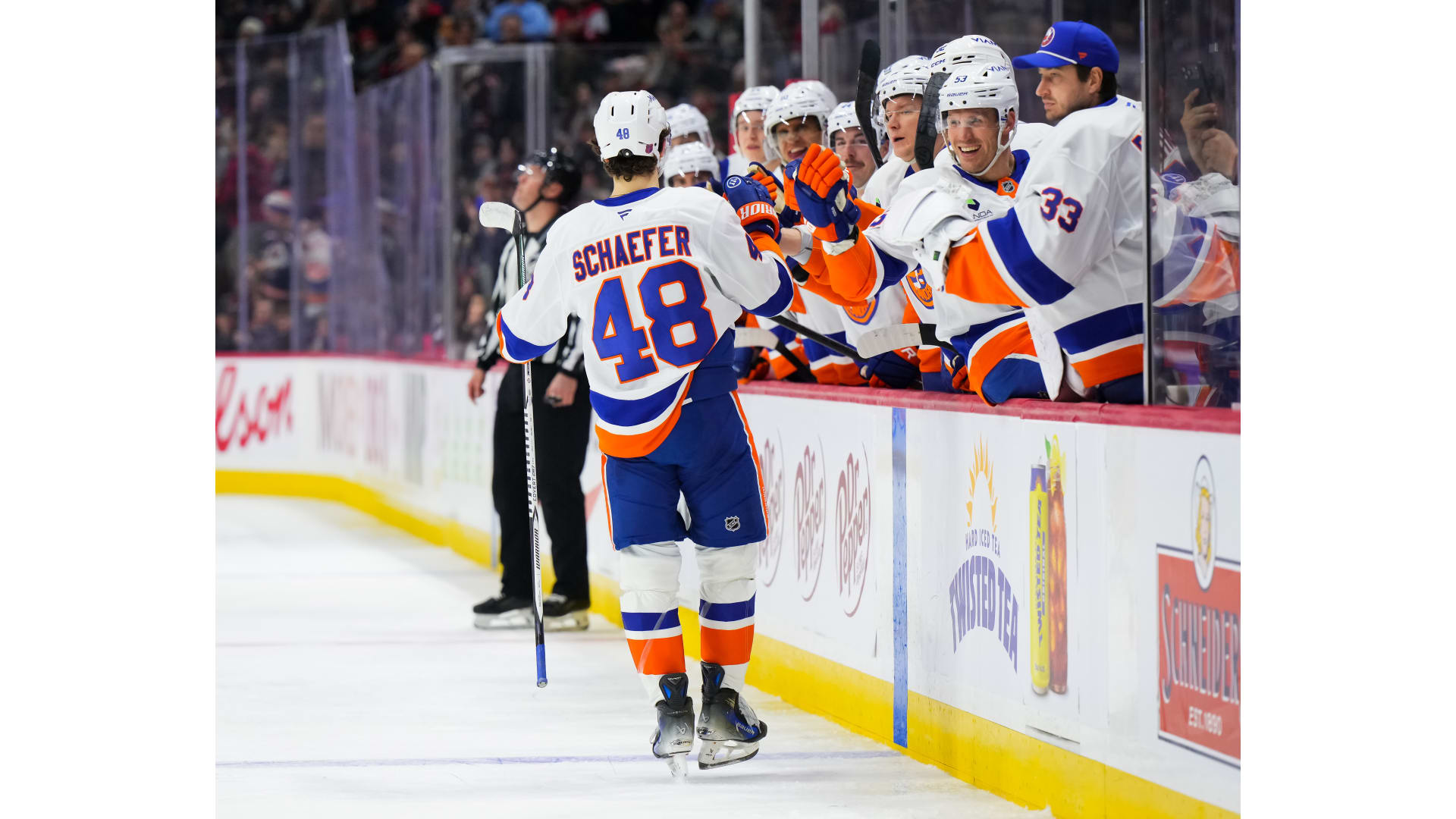 Matthew Schaefer and Brayden Schenn scored for the Islanders, who had 1-0 and 2-1 leads, while Shane Pinto (SHG) and Warren Foegele answered with a pair of tallies.