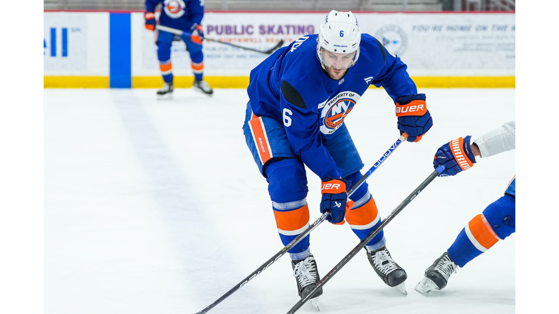 The defense pairings were rotating in practice, with Adam Pelech, Ryan Pulock, Adam Boqvist, Tony DeAngelo, Matthew Schaefer and Scott Mayfield participating.
