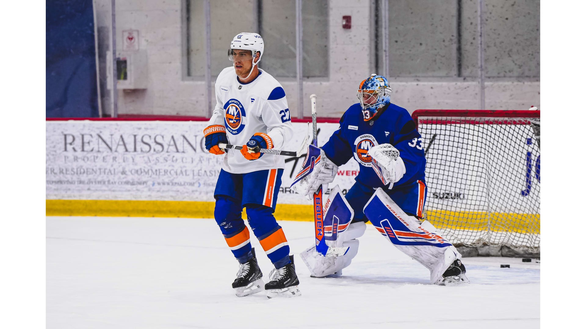 Alexander Romanov joined the New York Islanders for Monday's practice at Northwell Health Ice Center.