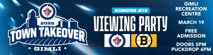 Gimli will host a full day of events, including Project 11 mental wellness sessions at Gimli schools, a Winnipeg Jets Alumni & Friends on-ice session for local minor hockey teams and a Winnipeg Jets vs. Boston Bruins all-ages watch party that brings the gameday experience to the community, complete with Mick E. Moose, giveaways and familiar gameday hosts.