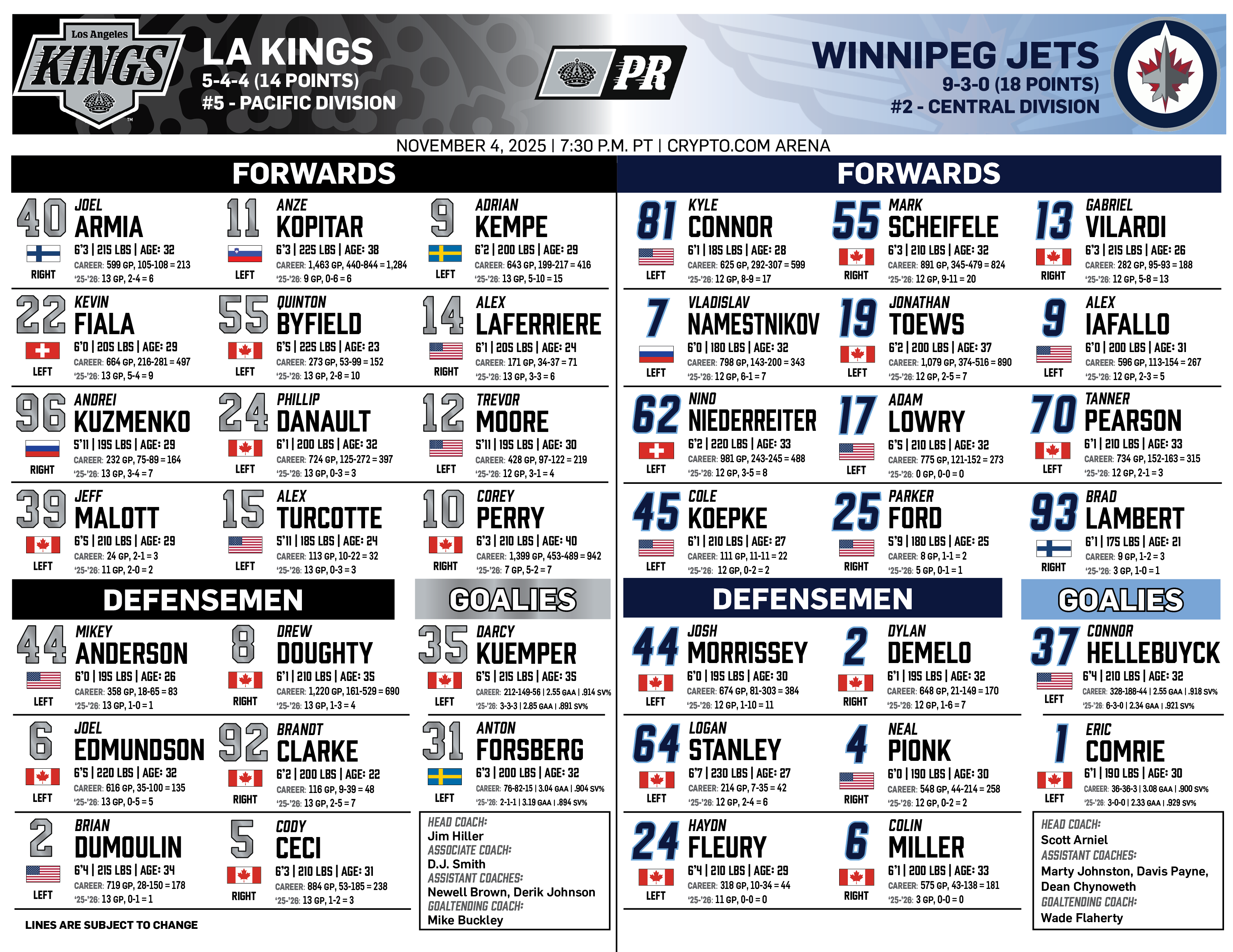 Nov. 4, 2025 | vs. Winnipeg | ||||||