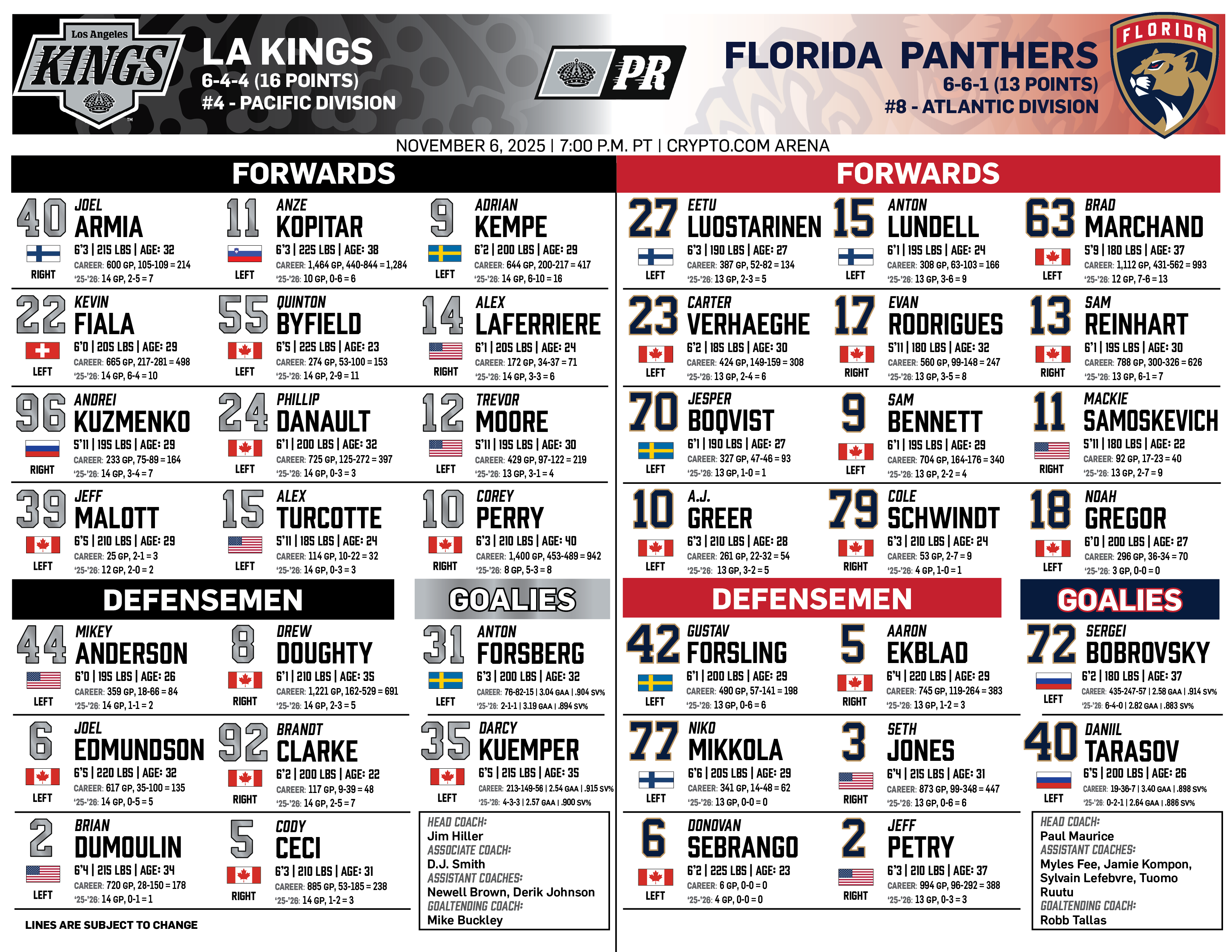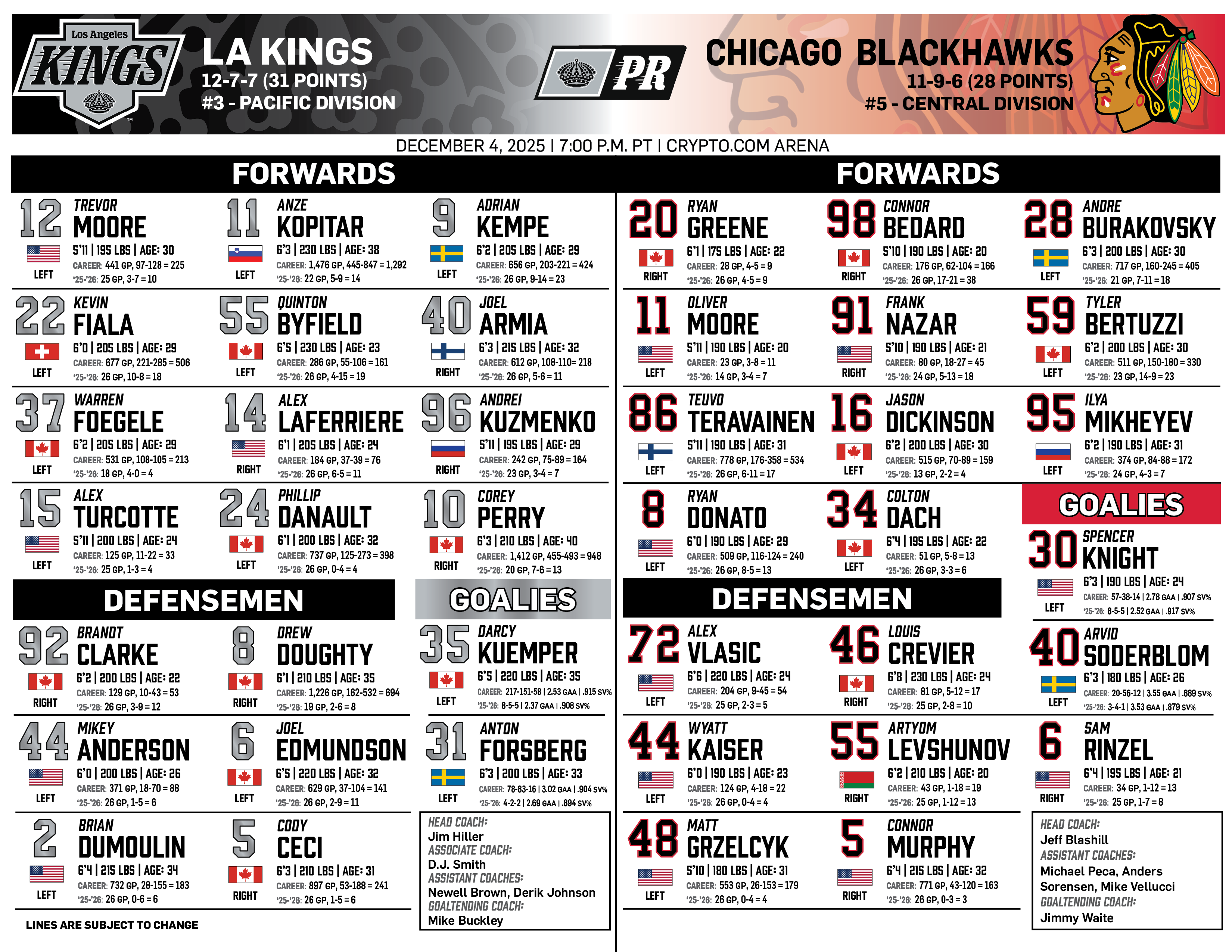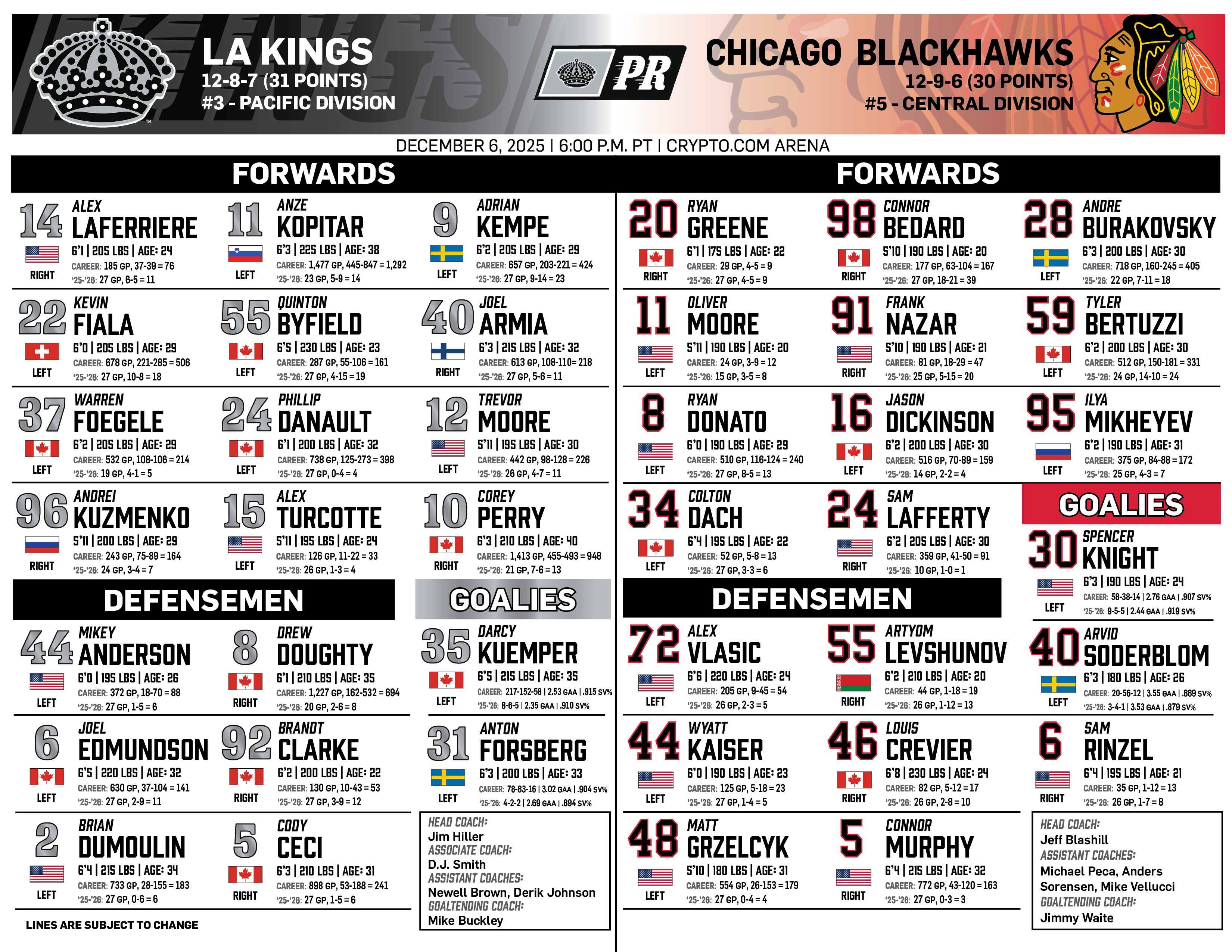 Dec. 13, 2025 | vs Calgary | ||||||