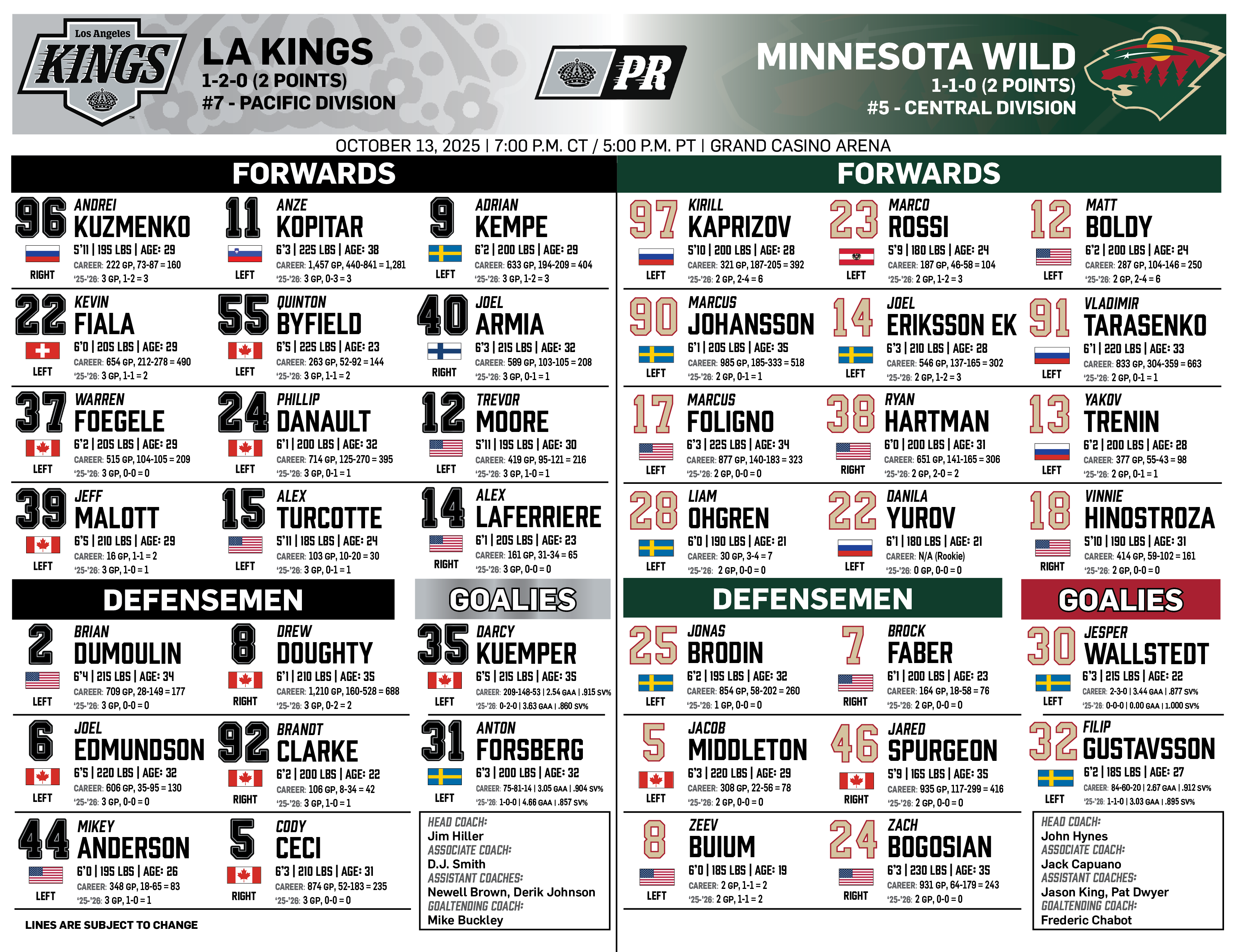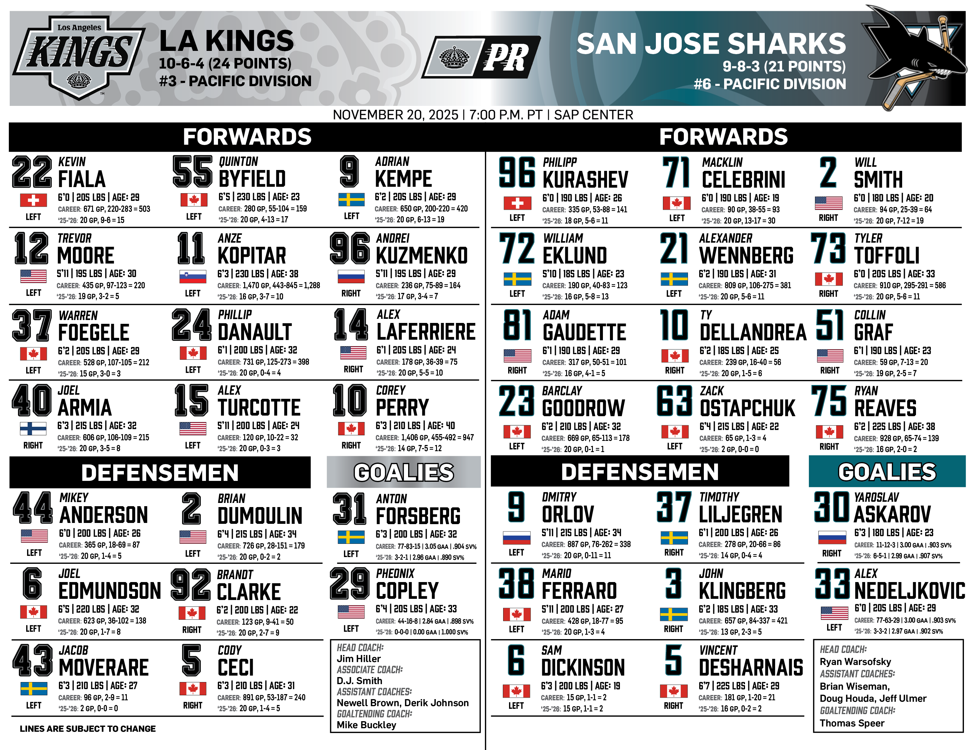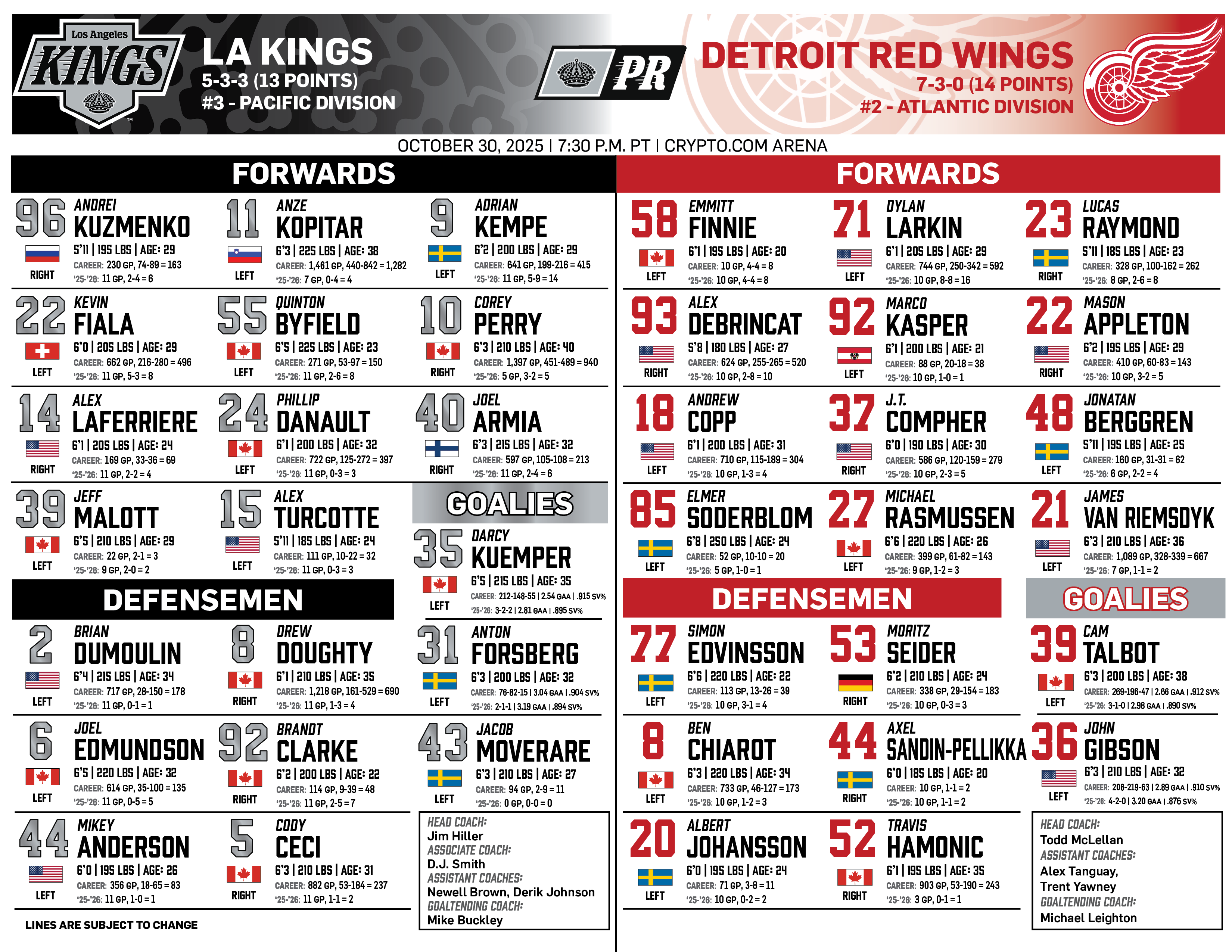 Dec. 13, 2025 | vs Calgary | ||||||