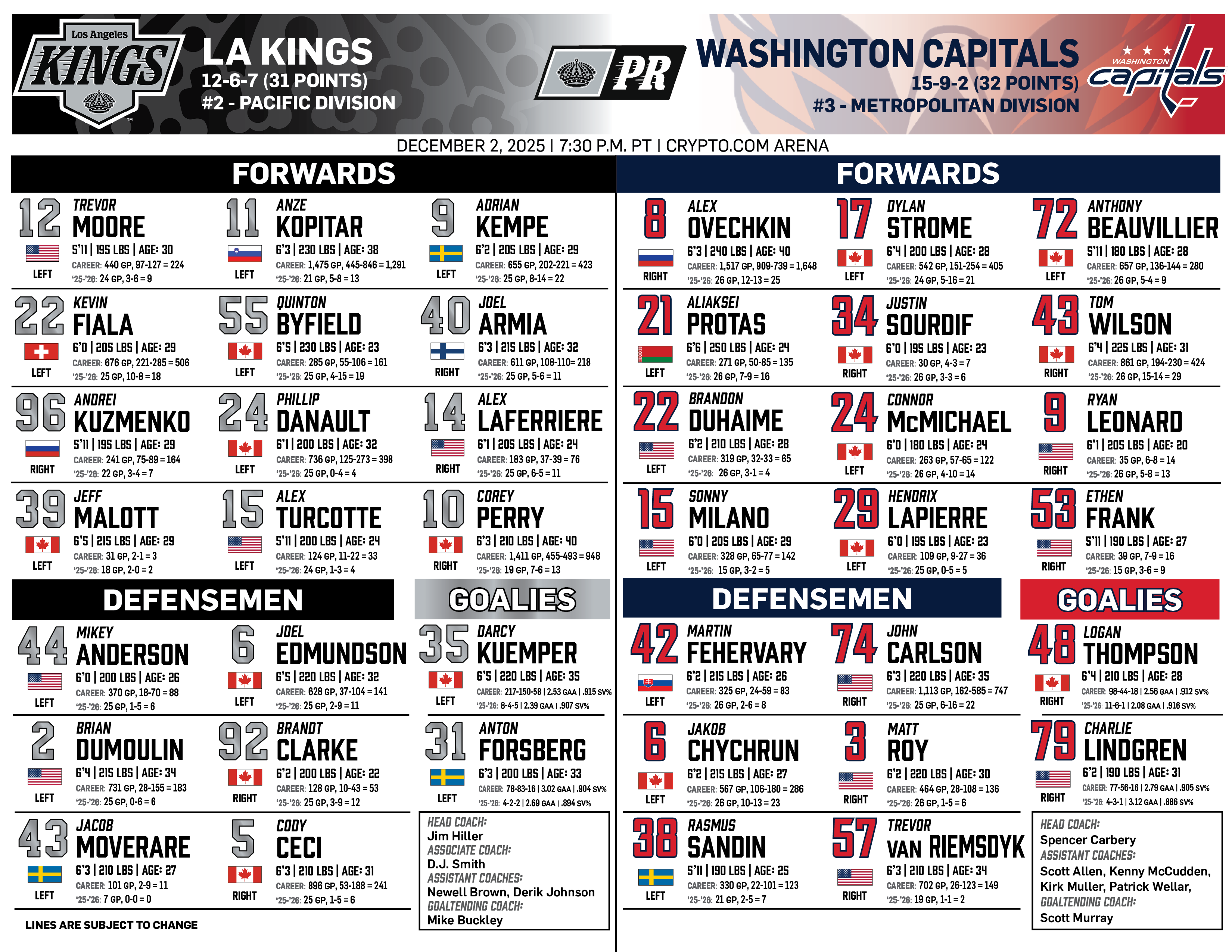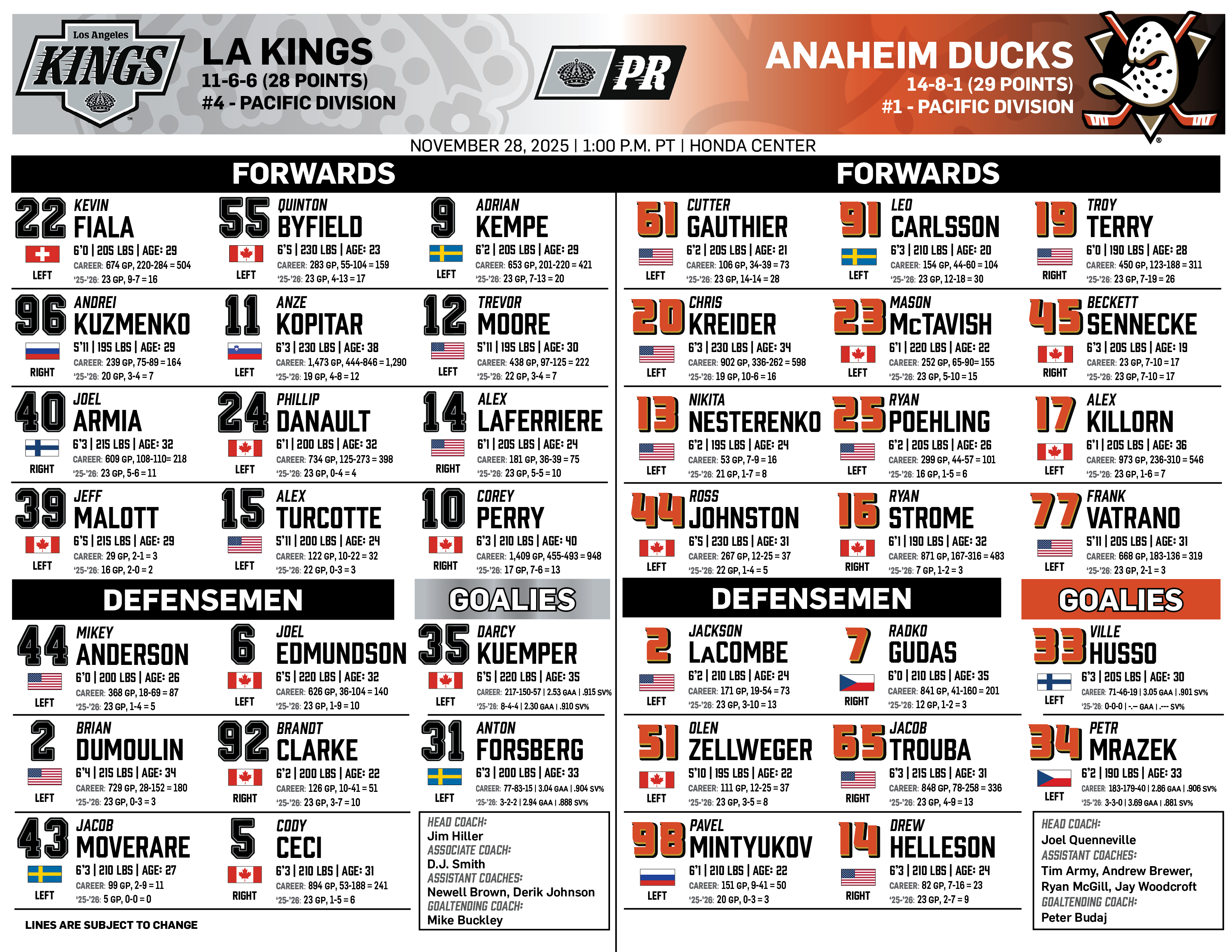 Dec. 27, 2025 | vs Anaheim | ||||||