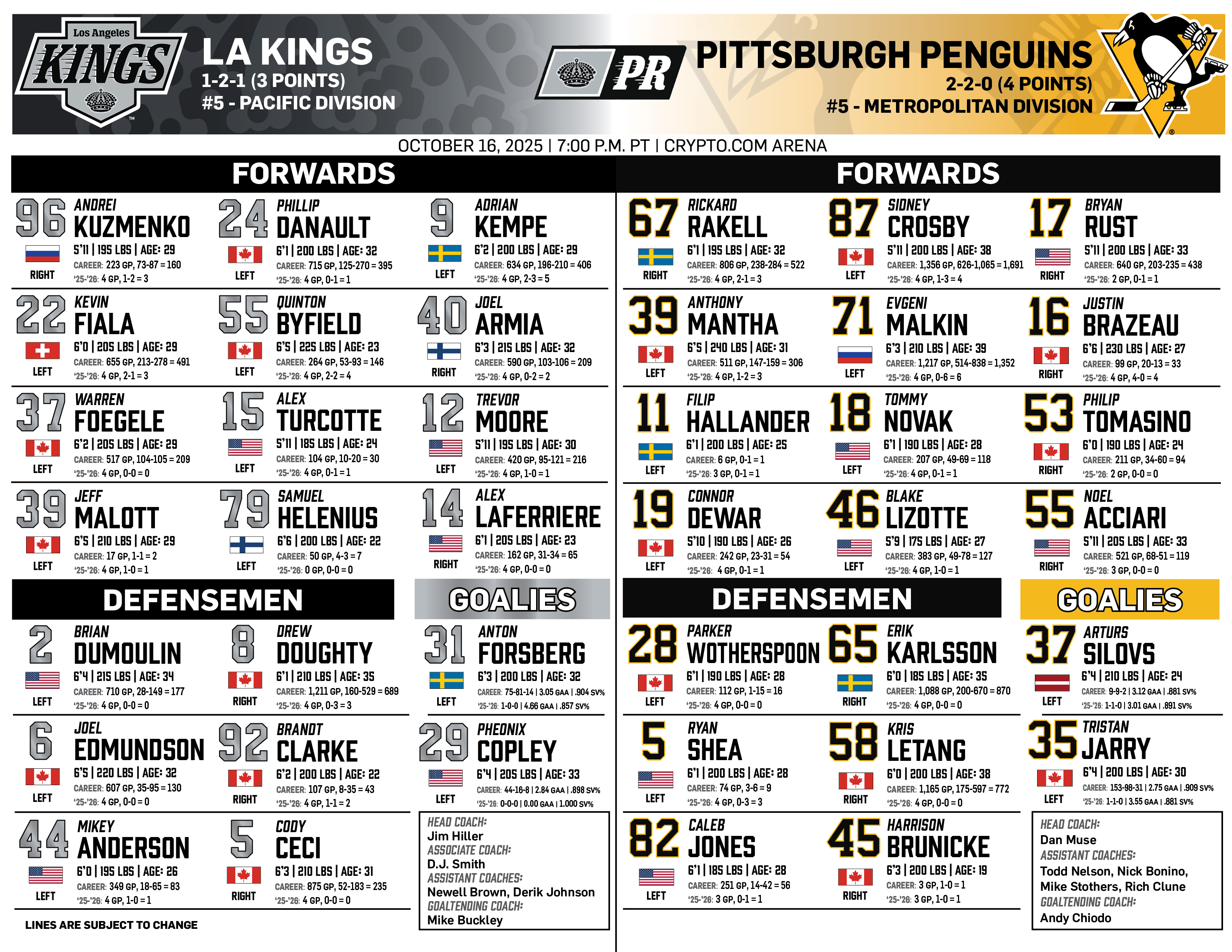 Oct. 16, 2025 | vs. Pittsburgh | ||||||