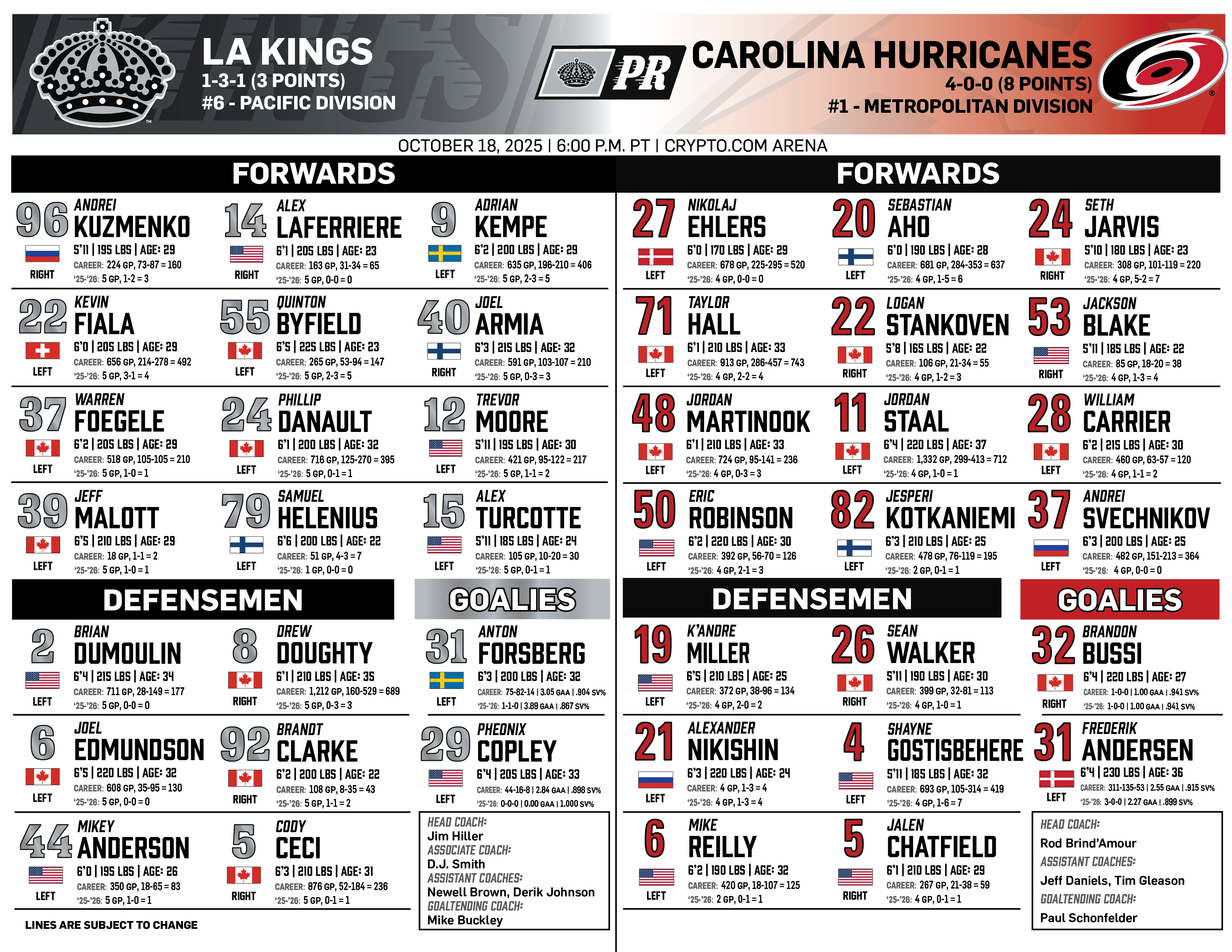 Oct. 18, 2025 | vs. Carolina | ||||||