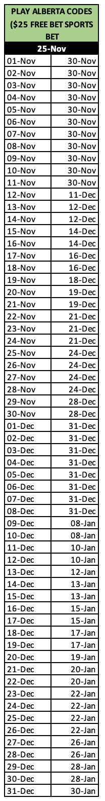 Play Alberta Sports Bet: Promo code expiry dates can be found here. Minimum $5 deposit required. Single bet only, odds 1.5 or higher. One use of promo code per Play Alberta account. Bonus Terms and Conditions apply. Questions or concerns? Chat with one of our agents online or call 1-833-920-1447.