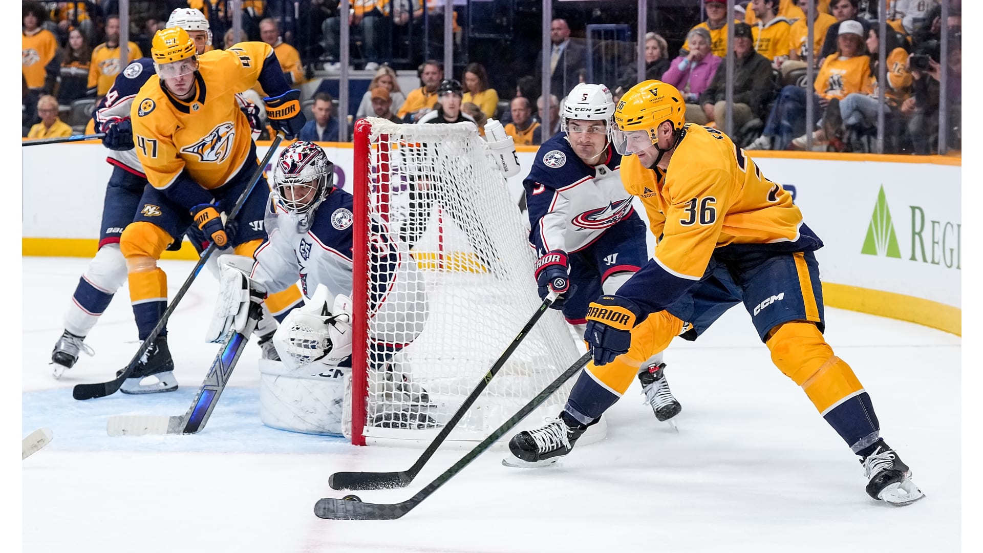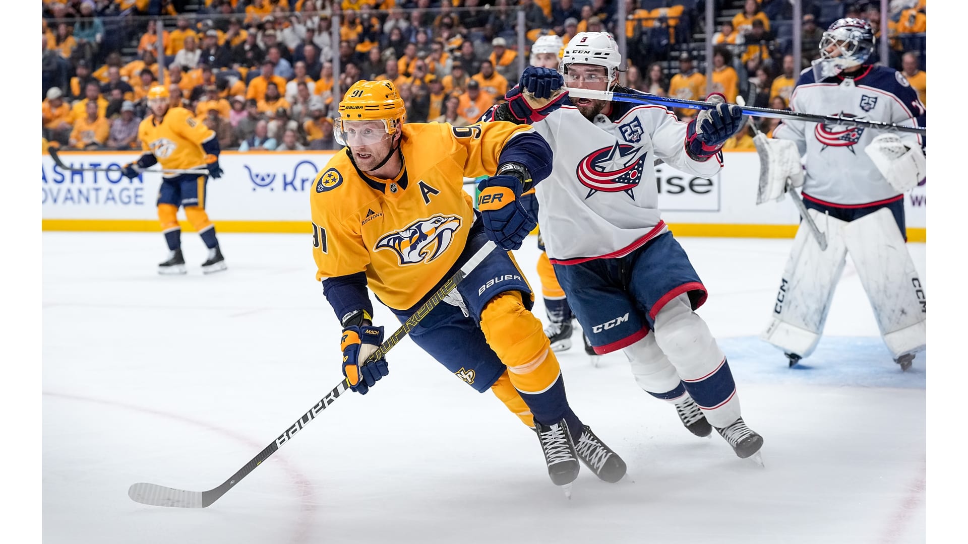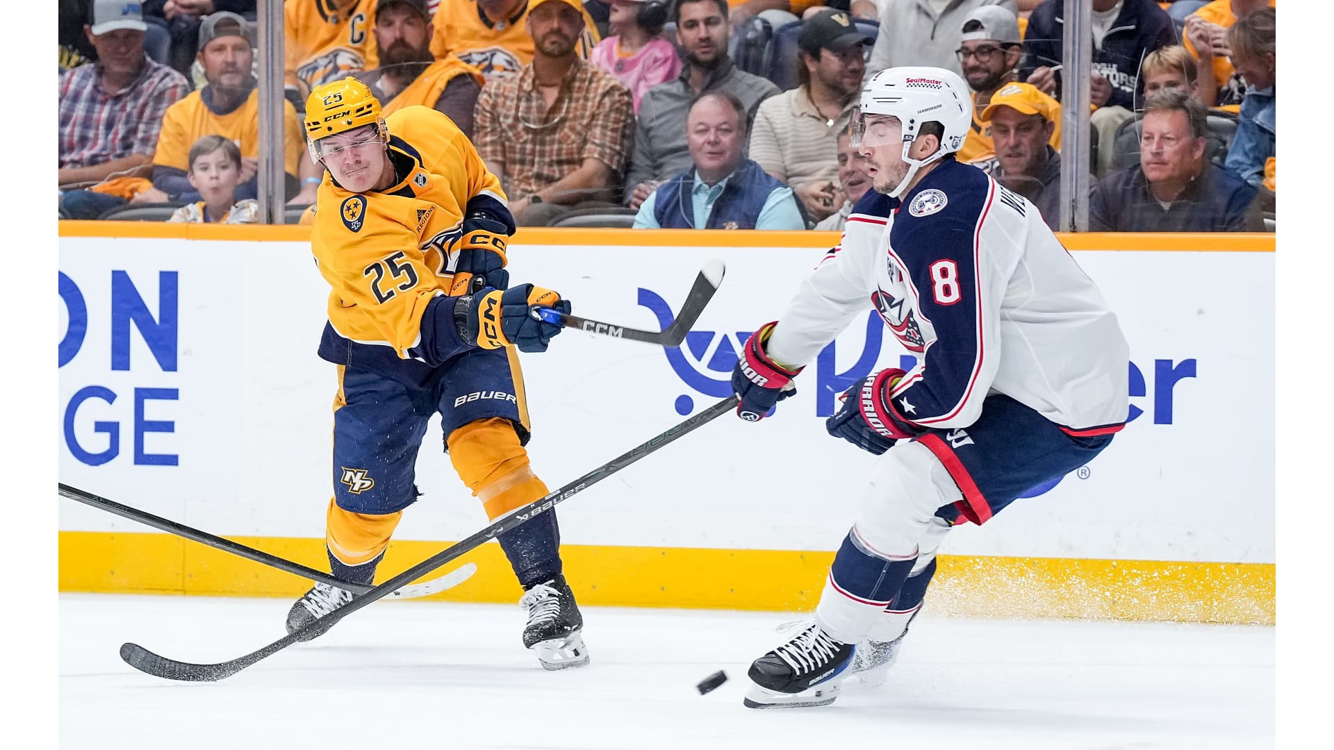 Photos from the Nashville Predators game against the Columbus Blue Jackets atĀ Bridgestone Arena, Thursday, Oct. 9, 2025, Nashville, Tenn. (Nashville Predators / Getty Images).