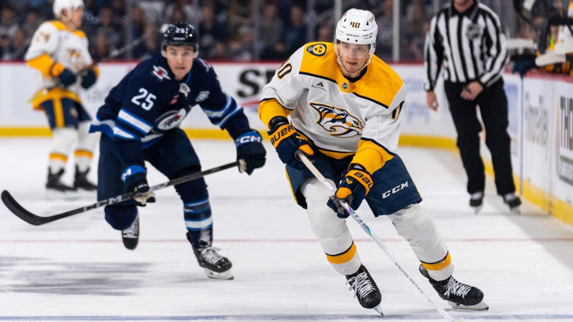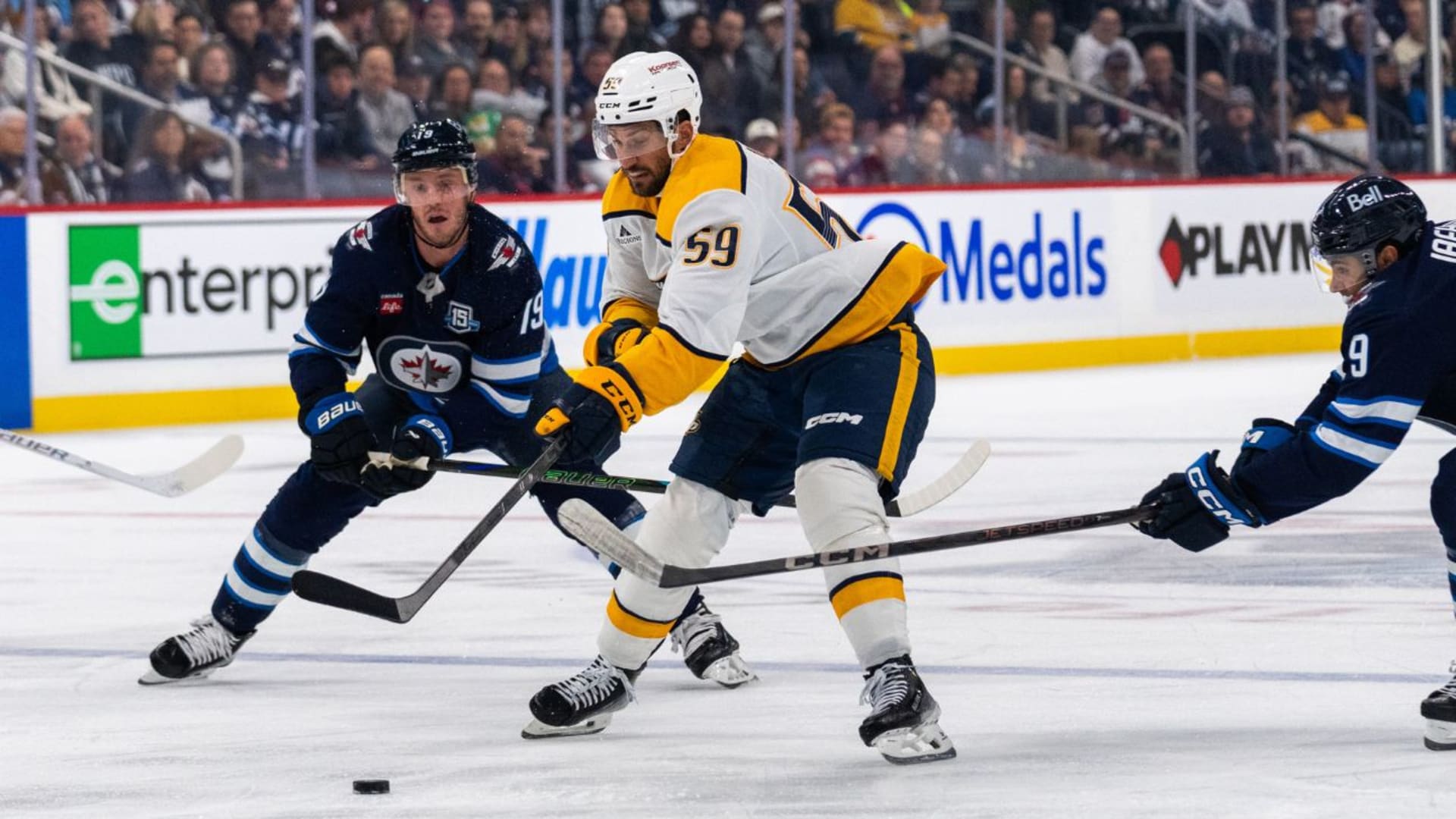Photos from the Nashville Predators game against the Winnipeg Jets at Canada Life Centre, Saturday, Oct. 18, 2025, Winnipeg, MB (Getty Images).