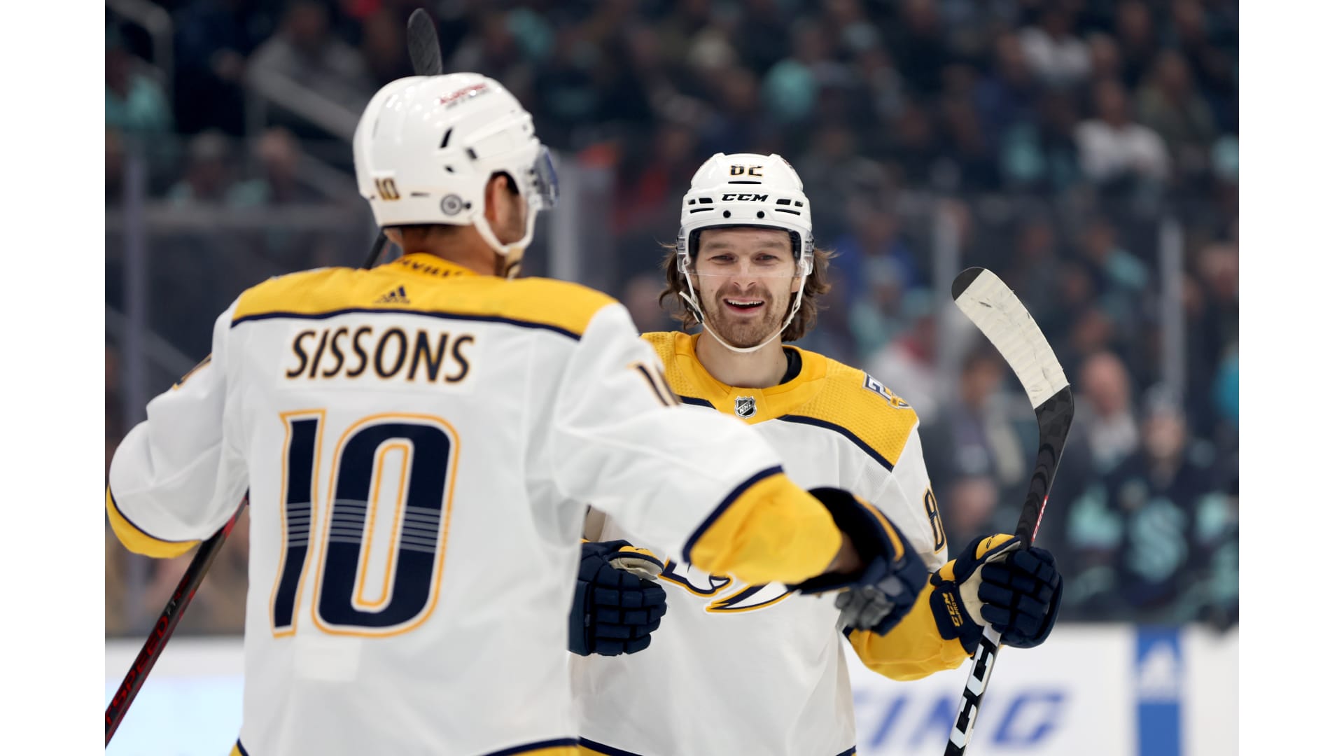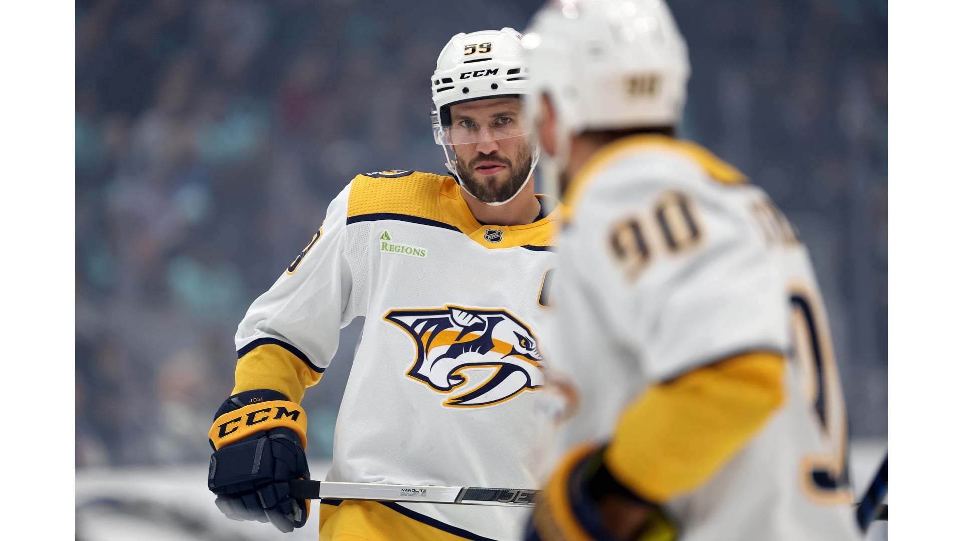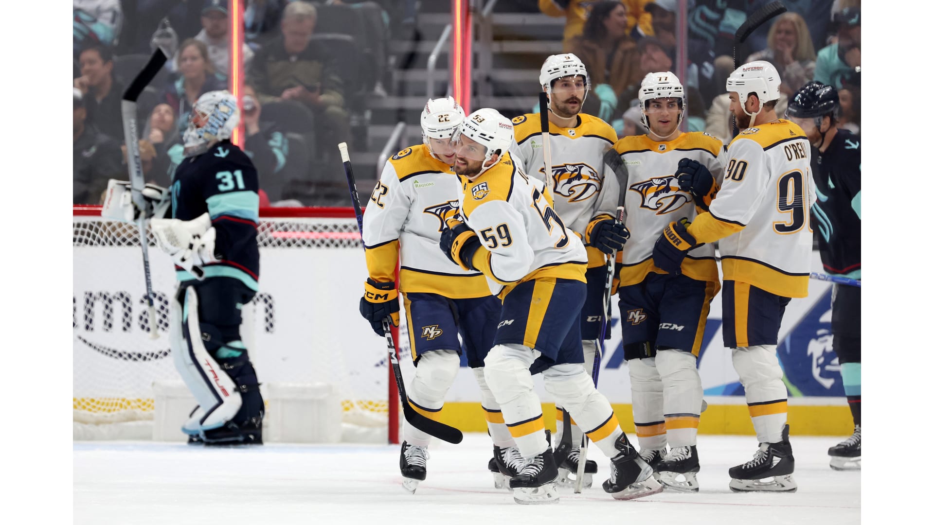Photos from Nashville's game against the Seattle Kraken at Climate Pledge Arena on Thursday, Nov. 2, 2023. Photos by Steph Chambers/Getty Images.