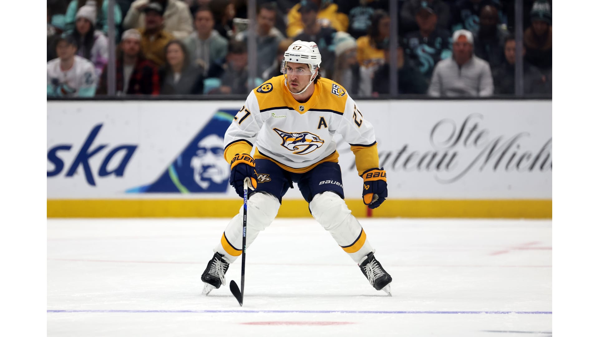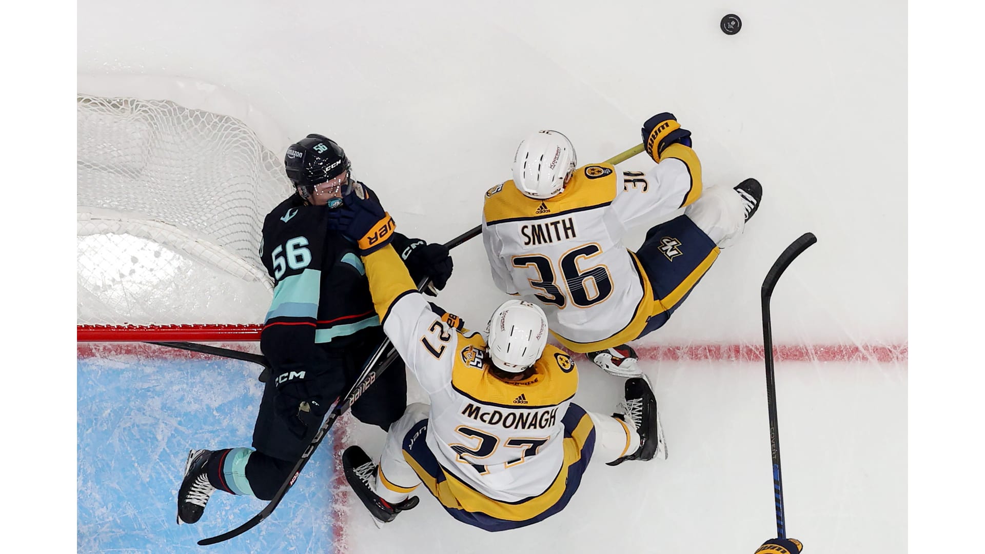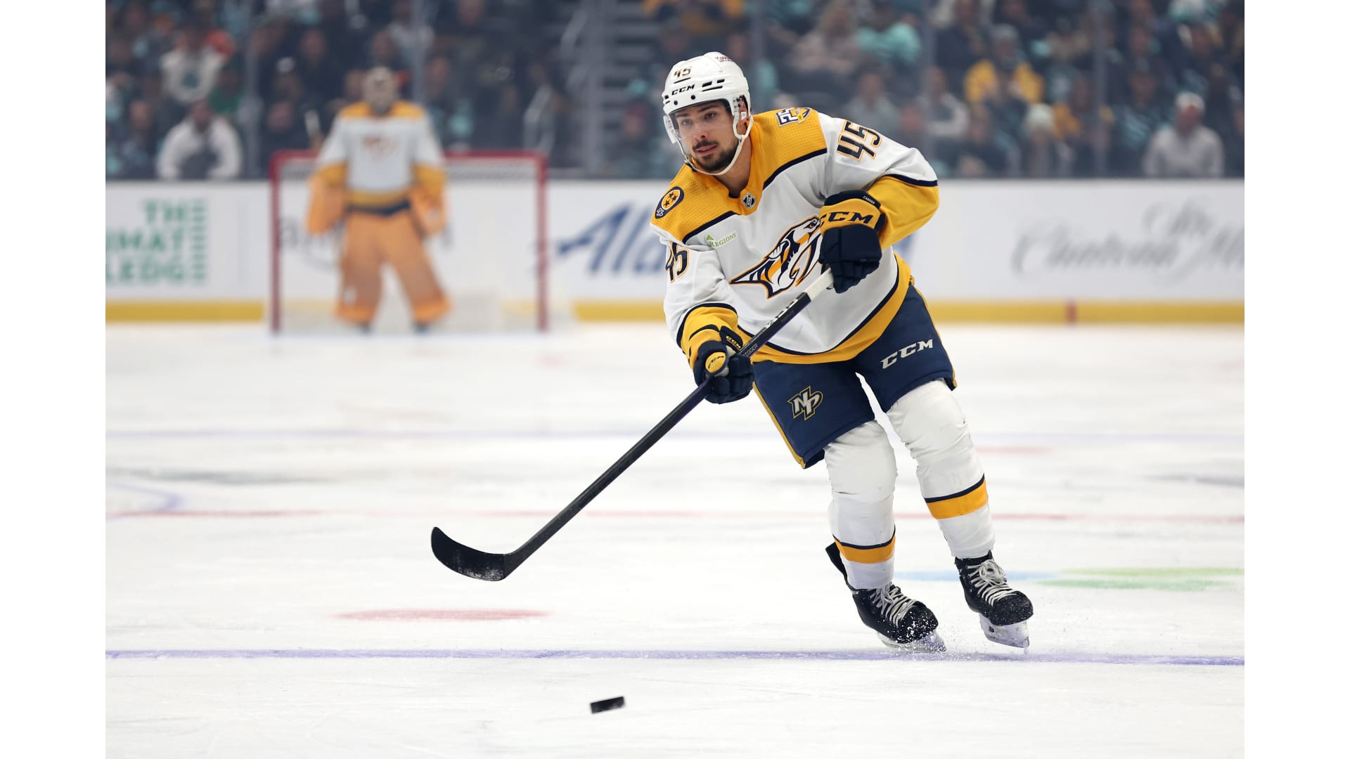 Photos from Nashville's game against the Seattle Kraken at Climate Pledge Arena on Thursday, Nov. 2, 2023. Photos by Steph Chambers/Getty Images.