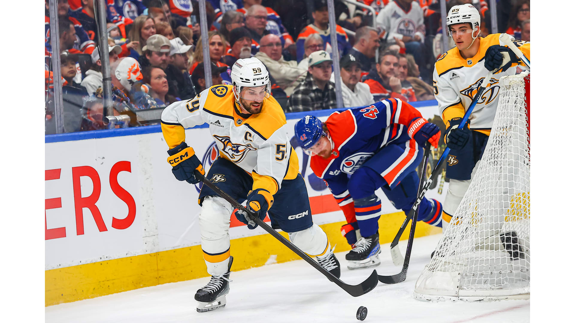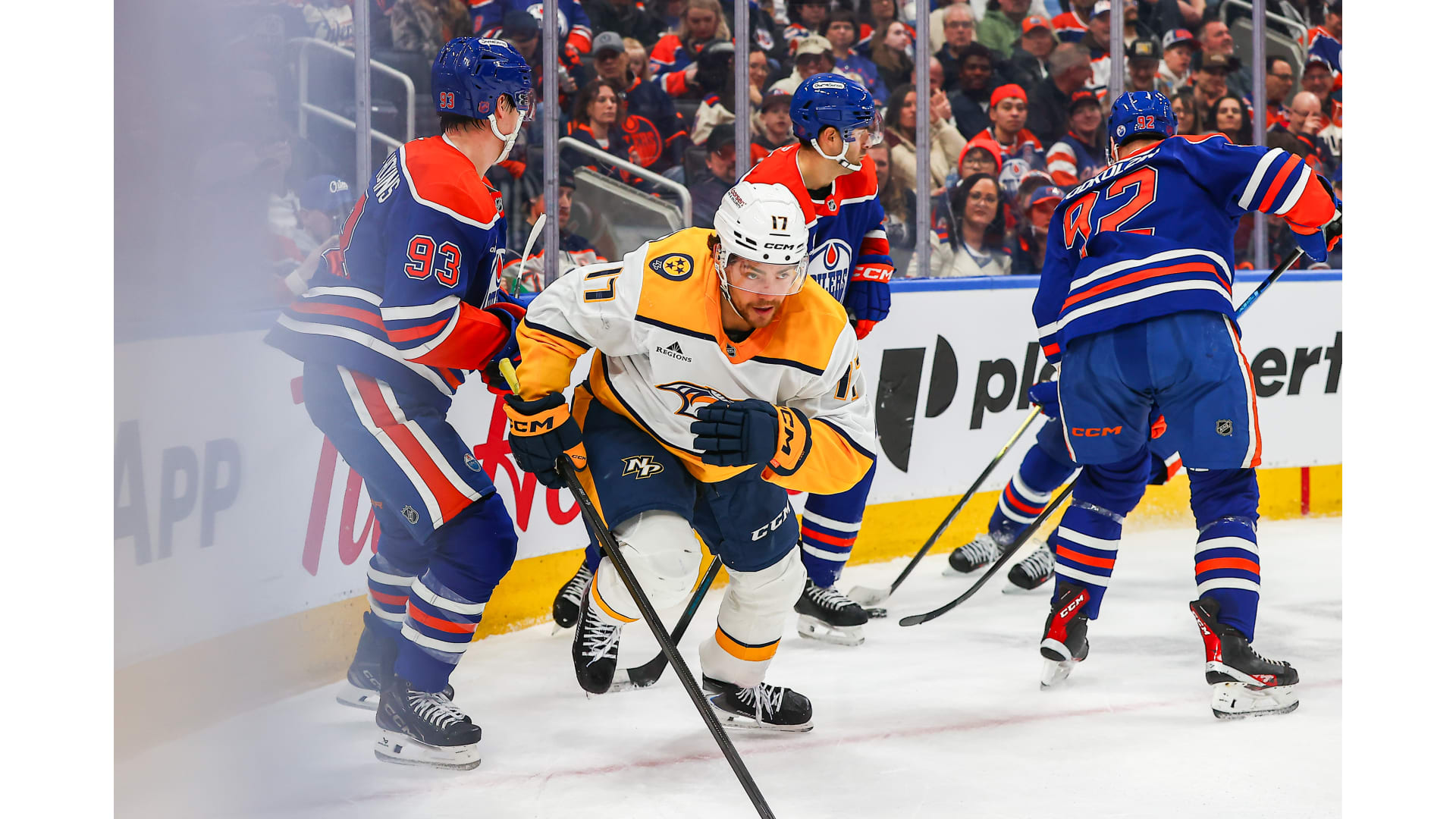 Photos from the Nashville Predators game against the Edmonton Oilers at Rogers Place, Tuesday, March 15, 2026, Edmonton, Alberta (Getty Images).