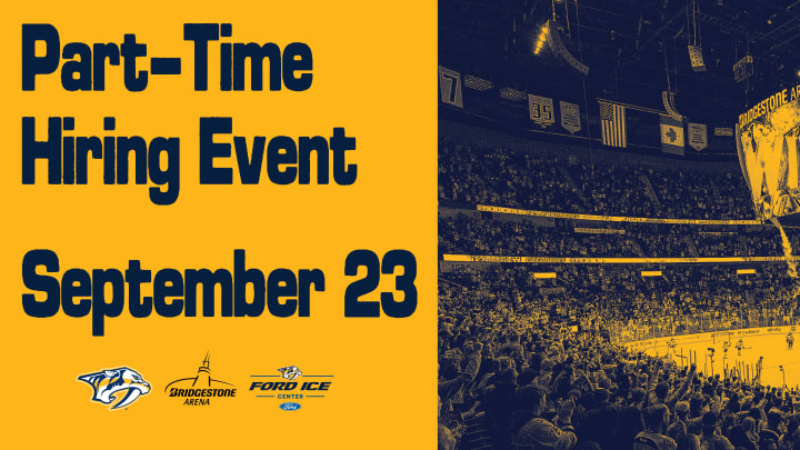Join us on Tuesday, Sept. 23, for our Preseason Part-Time Hiring Event! We are hiring for positions at Bridgestone Arena and Ford Ice Centers. Open roles include Guest Services, Public Safety, Operations and many more!