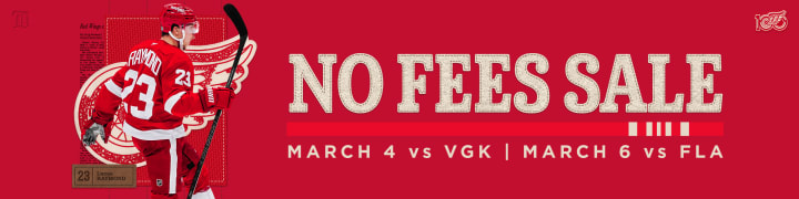 The team has returned from the Winter Games break, Dylan Larkin with a Gold medal, and we are welcoming them home with a No Fees Sale! Score tickets to ours matchups next week against the Vegas Golden Knights and Florida Panthers, without any of the fees.