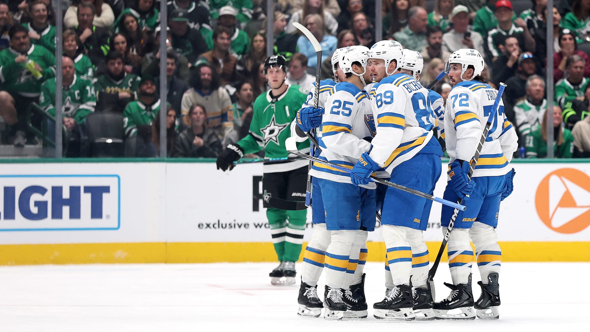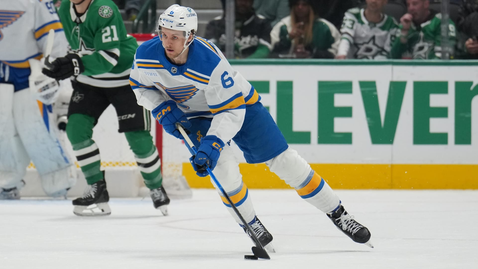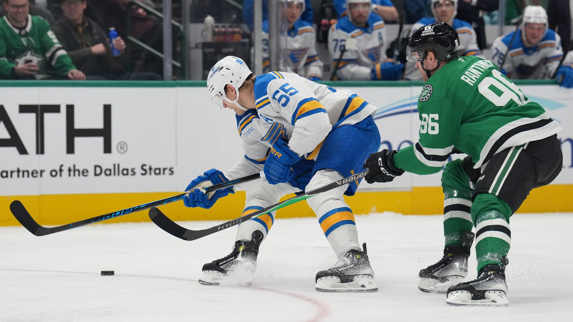 The St. Louis Blues fell 5-4 to the Dallas Stars at American Airlines Center on Feb. 4, 2026. (Photos: Getty Images)