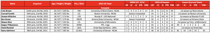 2025-26 Utica Comets Stats