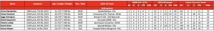 2025-26 Devils Prospect Stats