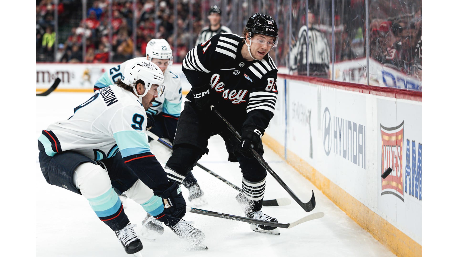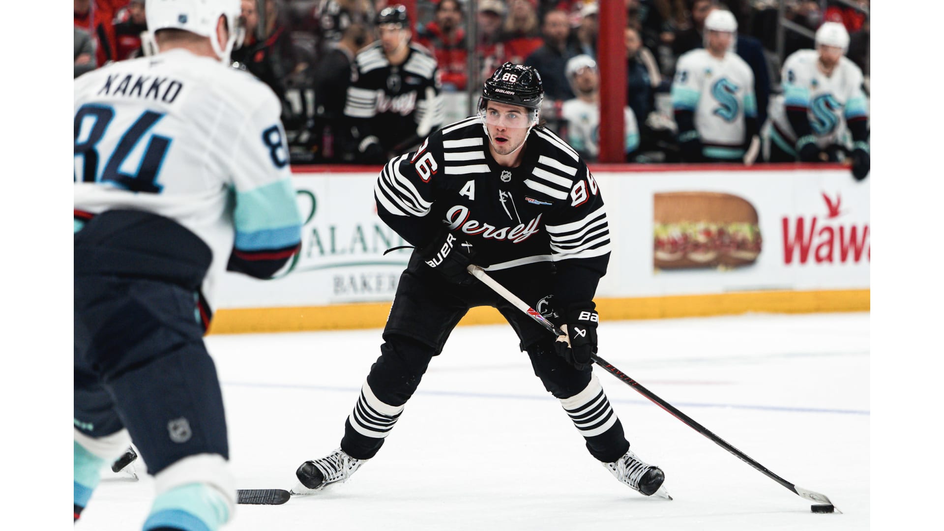 Photos from the game between the Devils and Seattle Kraken. Photos by Andrew Maclean, Tom Horak and Getty Images.