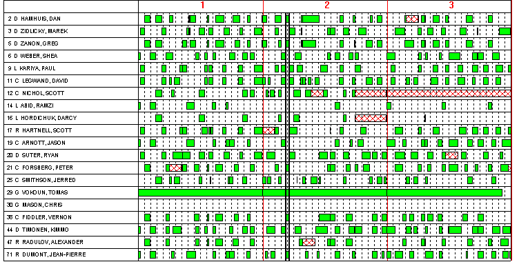 Western Conference Quarterfinal Friday, April 20, 2007 Attendance 17,113 at Nashville Arena Start 8:11 PM CT; End 10:40 PM CT Game 0185 - Final |
