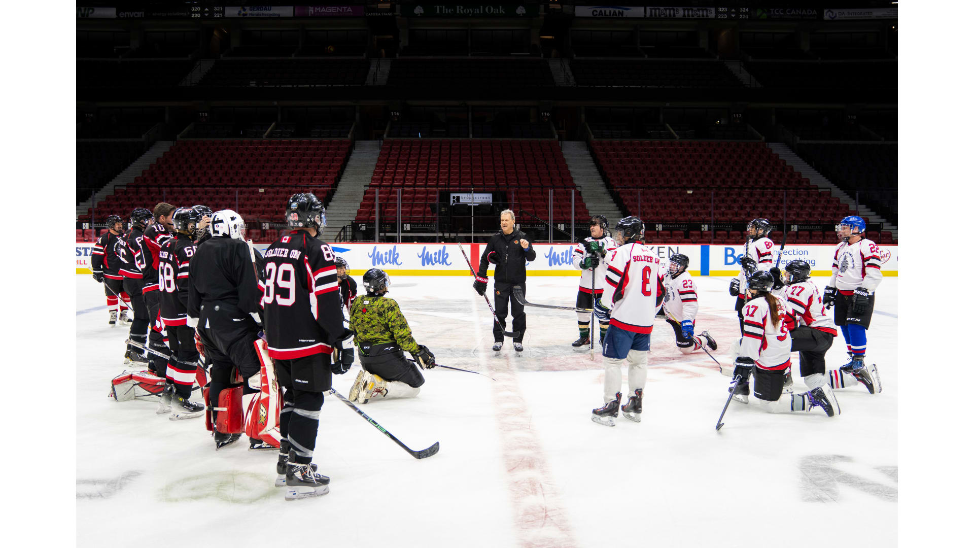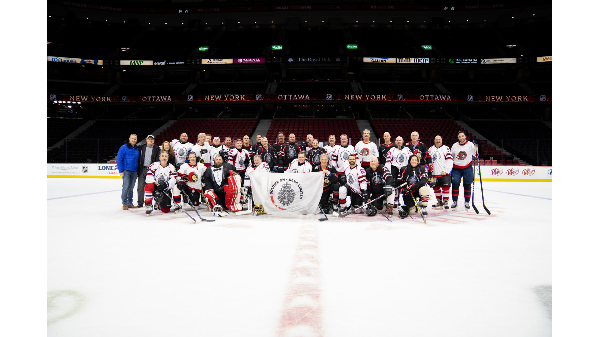 The Soldier On group took part in an off-ice training seminar at the Bell Sensplex facility, was put through the paces by Senators Alumni at a practice and was able to play with some of their favorite Senators Alumni during a game on Canadian Tire Centre ice. The Soldier On group was also able to catch the OTT vs NYI game on Thursday March 19th, where they were hosted by members of the Alumni Association.