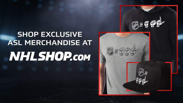Featuring the letters "ASL" represented in hand signs, this collection pays a nod to the league's continued efforts to make hockey accessible to the deaf and hard of hearing.
